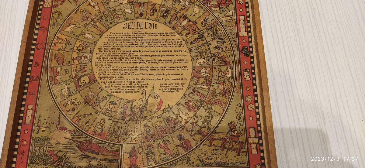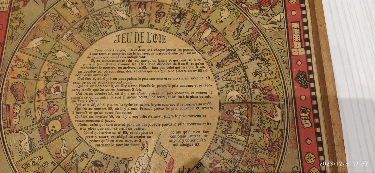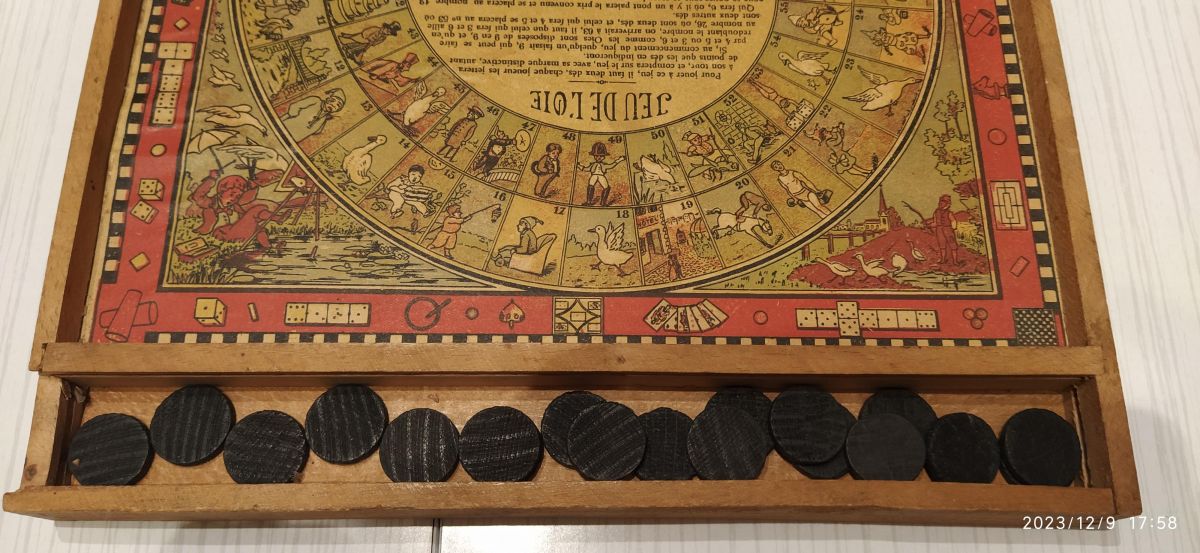 Le temps a laissé des traces, le jeu d'oie et de dames est jauni mais pas déchiré.