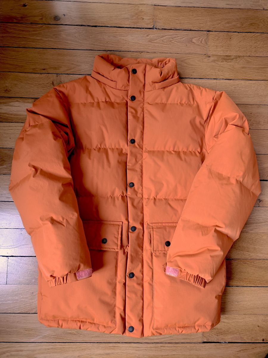 Doudoune orange très chaude de la marque Stan Ray (modèle Down Jacket), style vintage, inspirée des vêtements d'extérieur des années 70 et 80. Modèle rare, sold out sur la plupart des revendeurs en ligne.