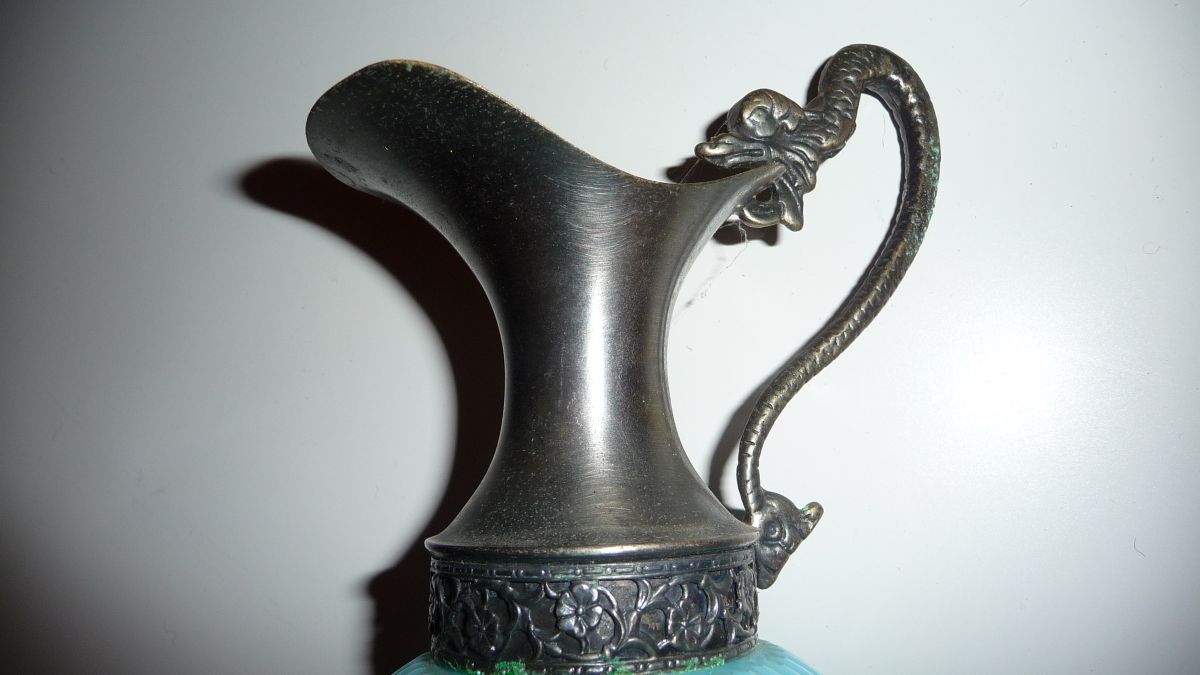 Aiguière en opaline et étain, en parfait état, ancienne.