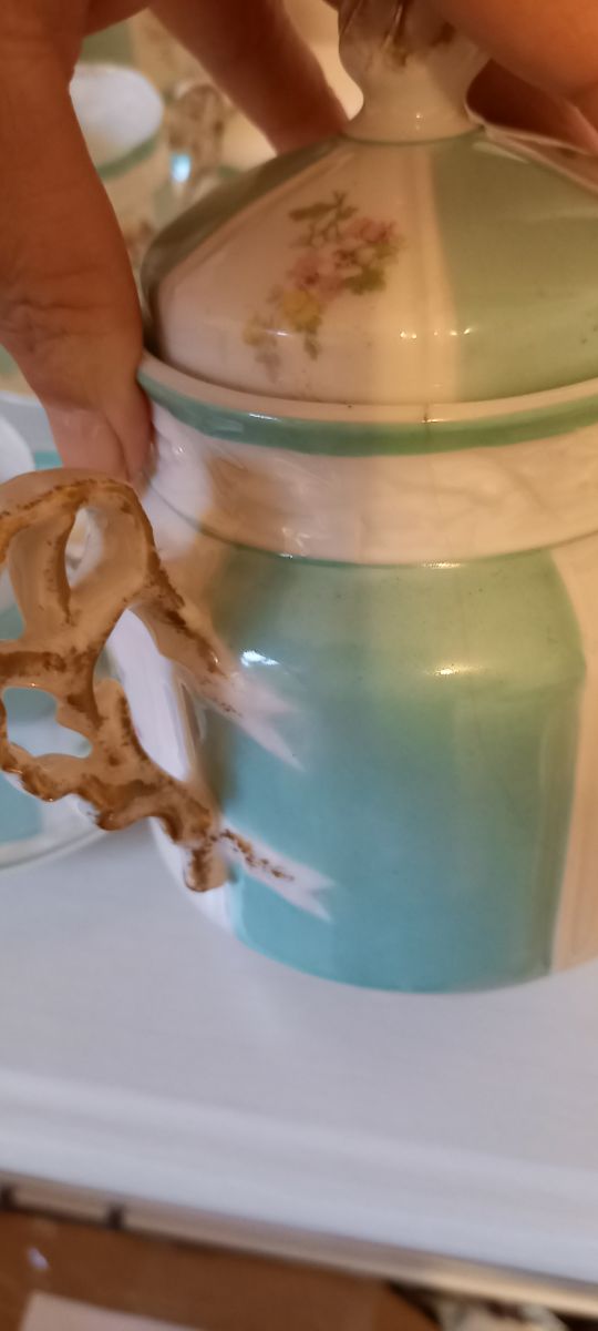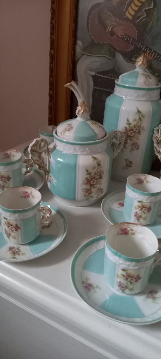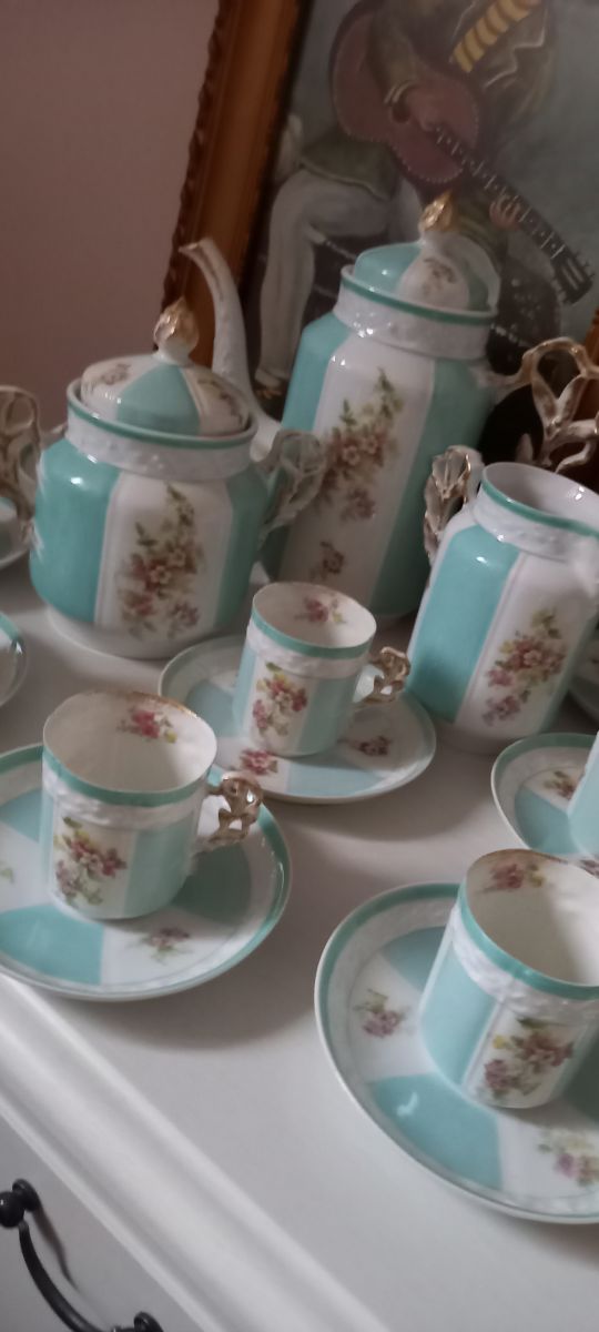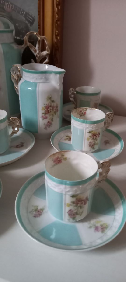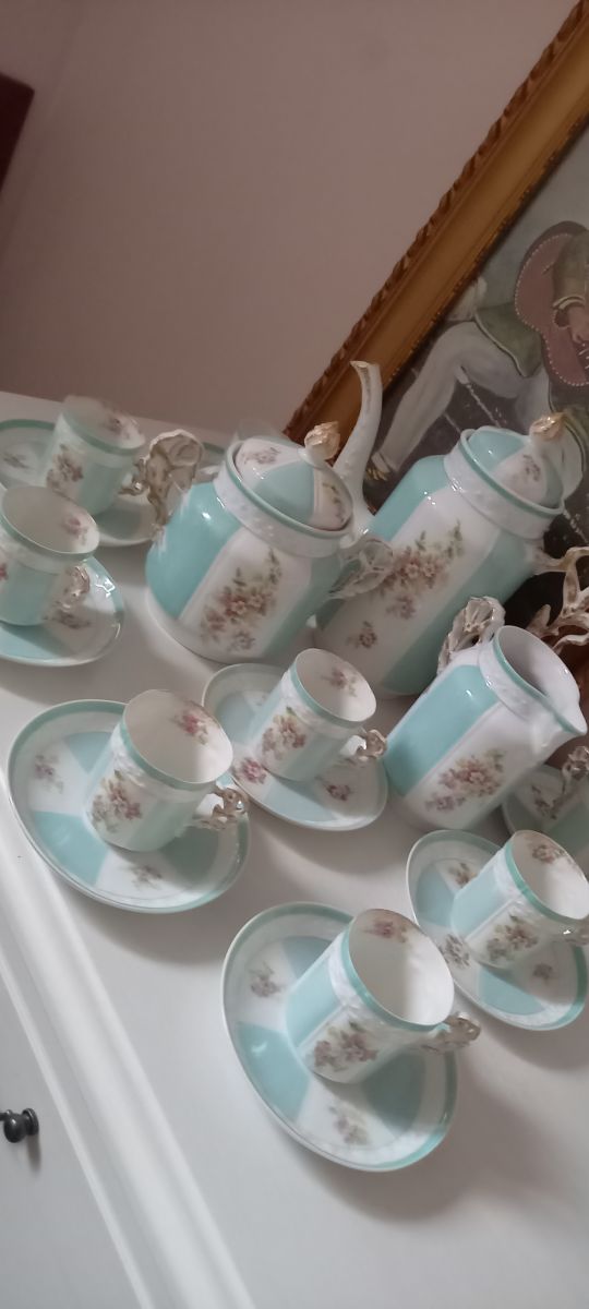 Quelle beauté ce service a cafe en porcelaine de saxe très bonne état seul le sucrie a un cheveux tout le reste ai en très bonne état. Envoyé très soigné. Je reste à disposition pour tout renseignement