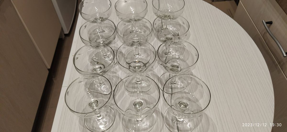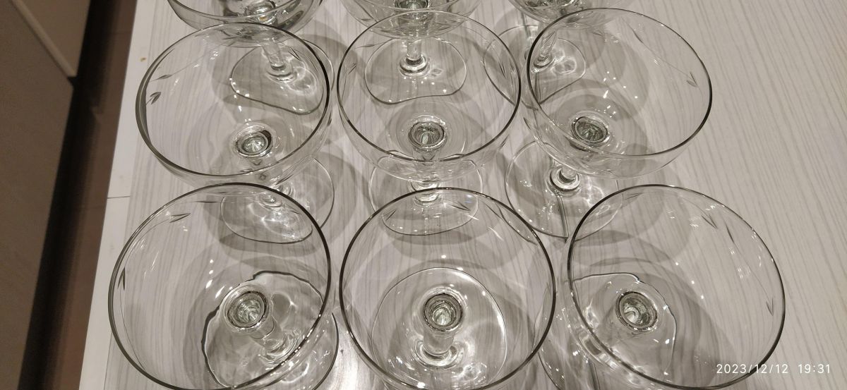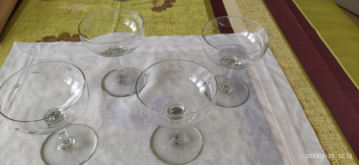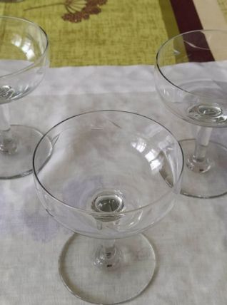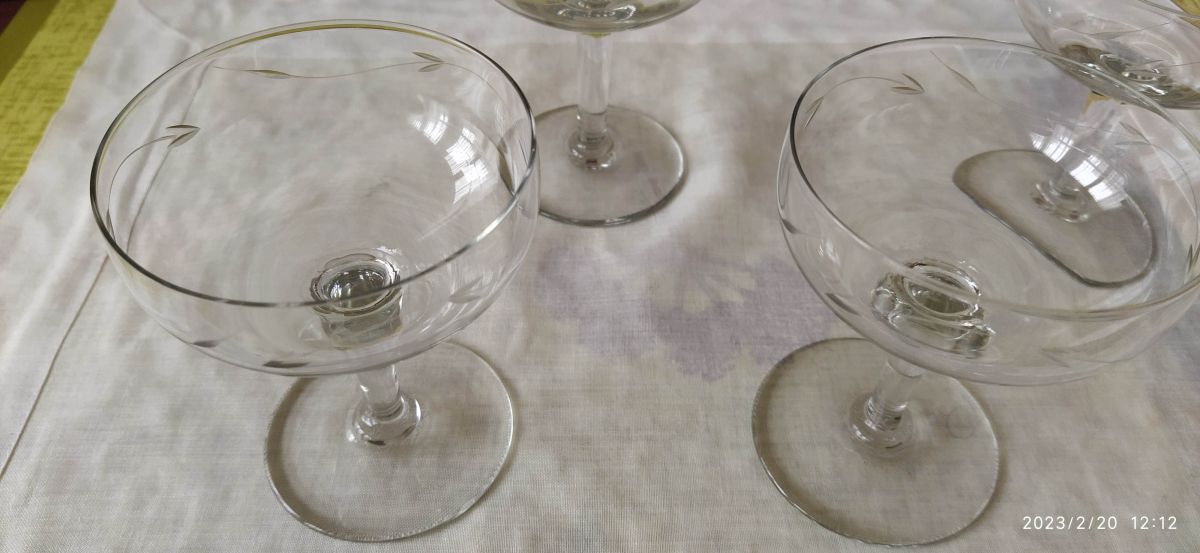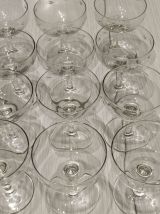 12 Coupes à champagne vintage des années 50, en cristallin . Finement ciselées, elles ont une allure sobre et élégante qui se mariera parfaitement avec une vaisselle plus contemporaine.