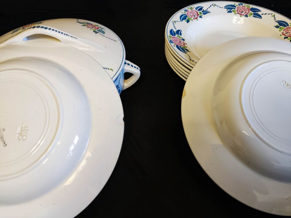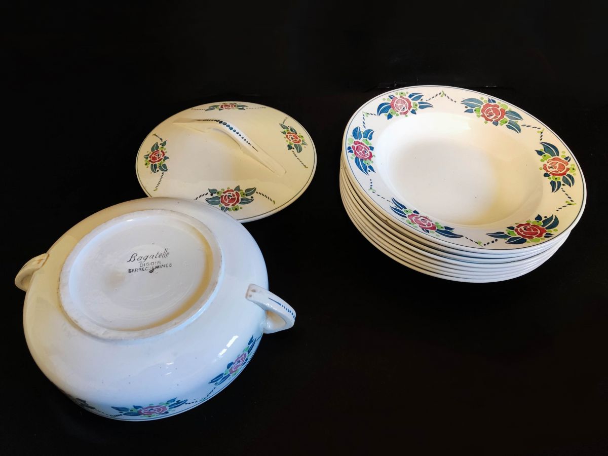 service "Bagatelle" de Digoin Sarreguemines de 9 assiettes à soupe + soupière