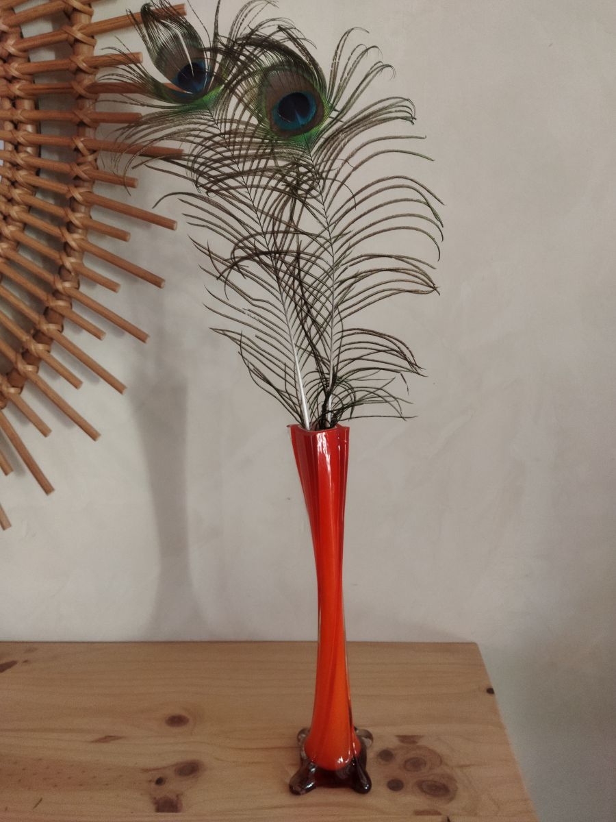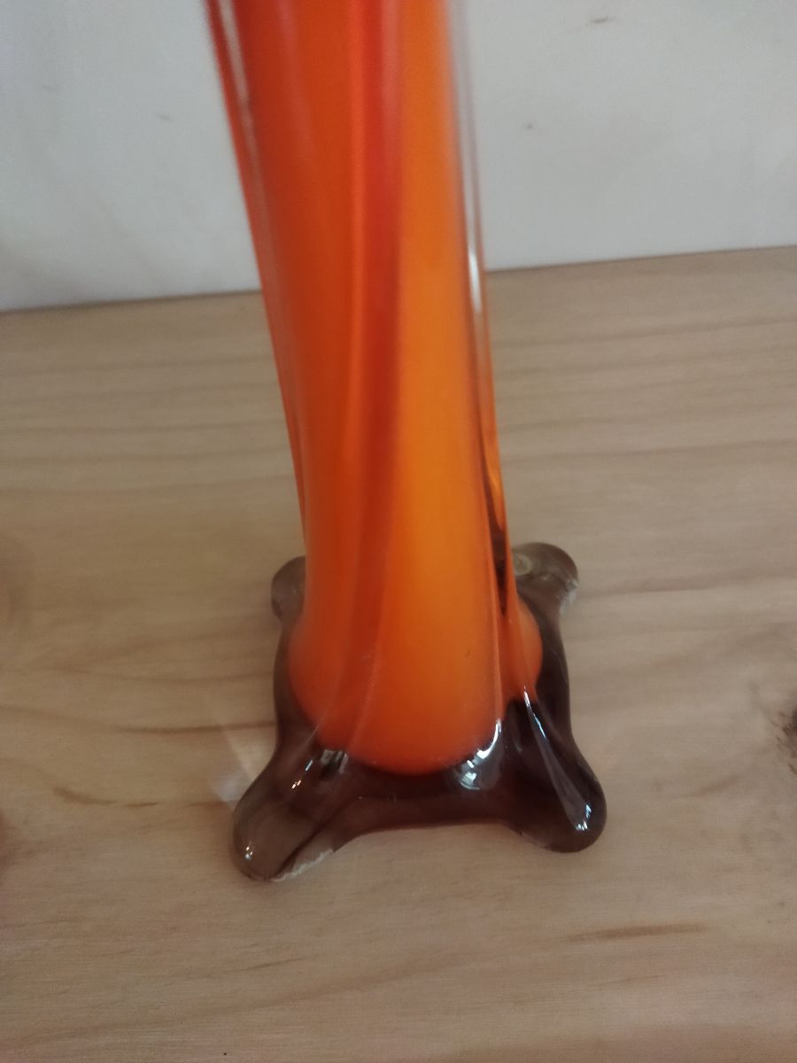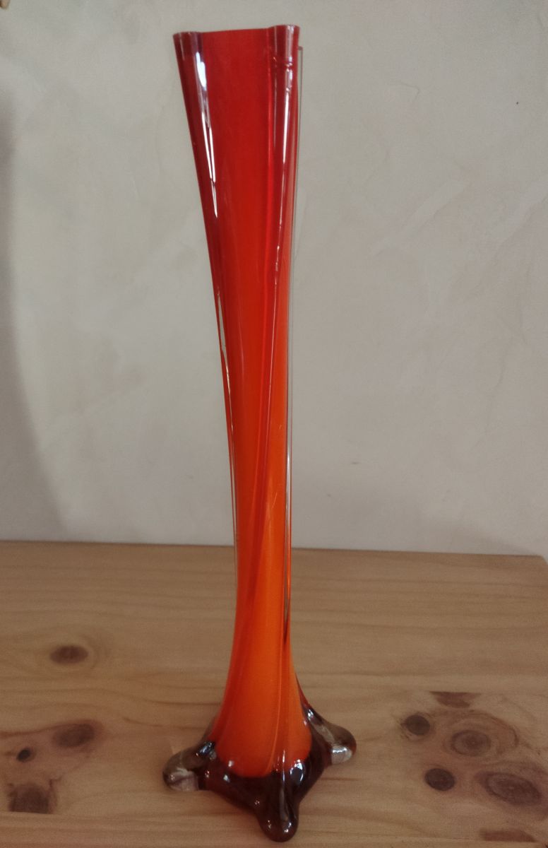 Joli vase vintage en verre de couleur orange, très bel état, aucune fissure ou rayure.