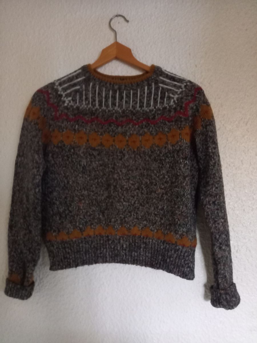 Pull col rond tons chiné de gris, rouille et bordeaux