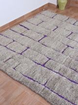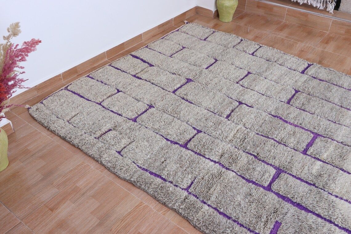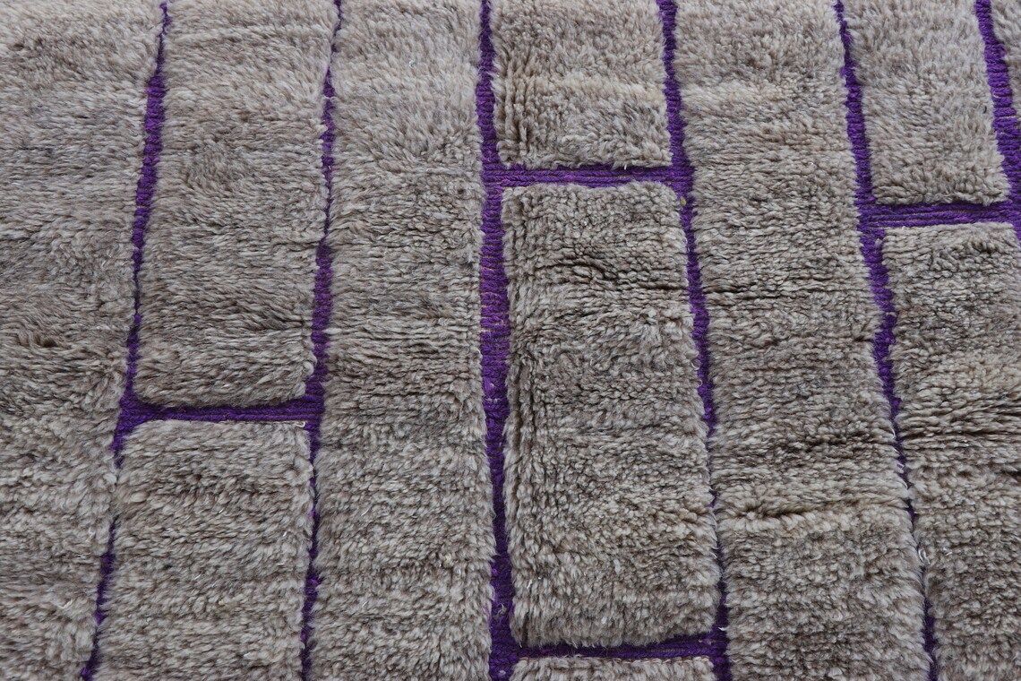 Plongez dans le luxe avec notre tapis berbère marocain fait à la main, une superbe combinaison de nuances de gris et de violet. Fabriqué avec une laine de haute qualité, son design complexe reflète une artisanat intemporel. Rehaussez votre espace, commandez maintenant pour une touche d'élégance. Veuillez prévoir 14 jours pour la livraison