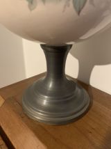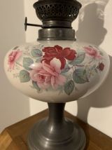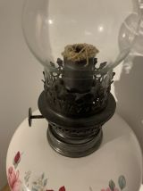 Lampe à pétrole vintage en étain et porcelaine Très jolie l