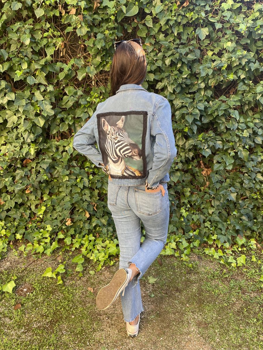 Veste en jean, avec imprimé Zèbre dans le dos.