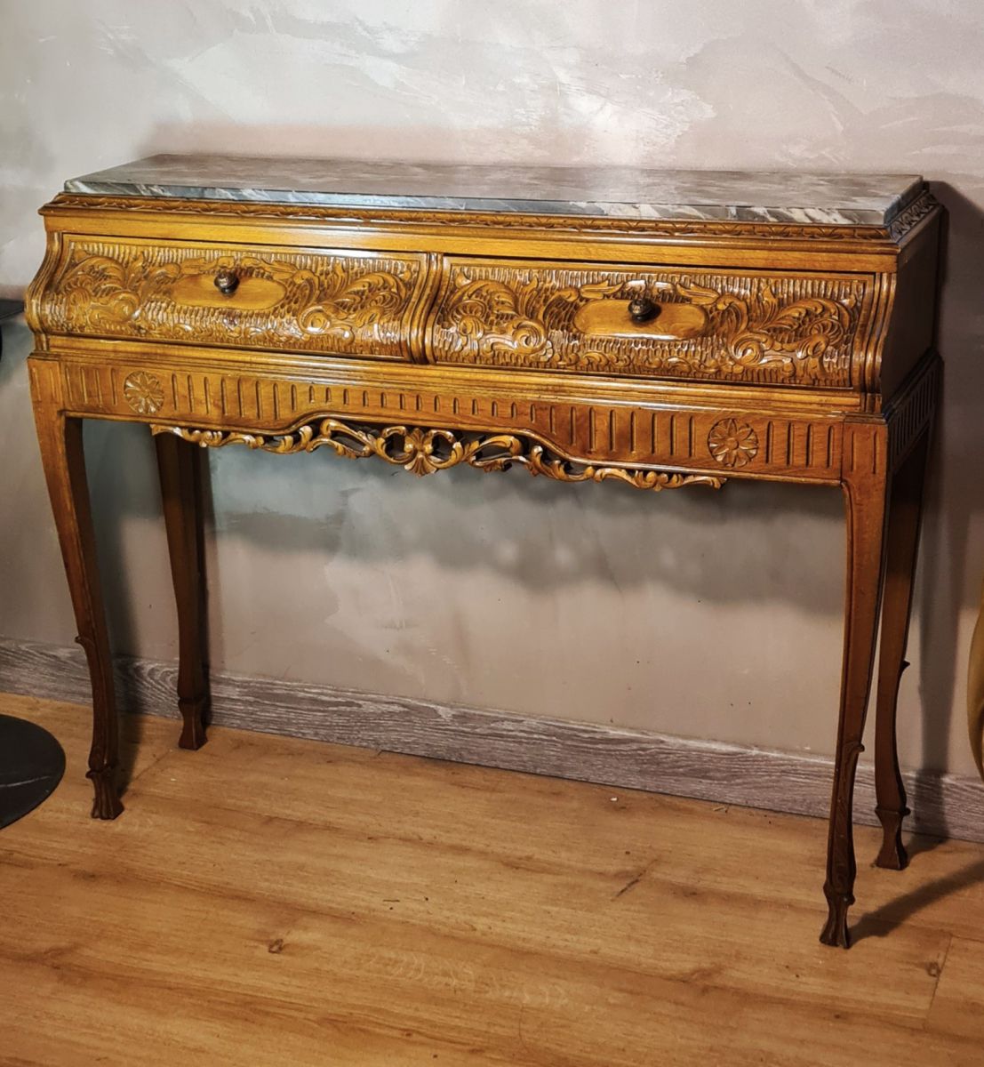 console style art nouveau a 2 tiroirs, vintage, ebeniste top , vendu a barcelone 1940 a 60 cocolis et a votre charge