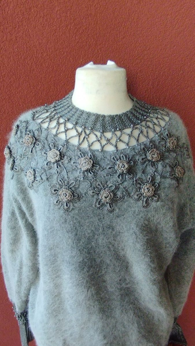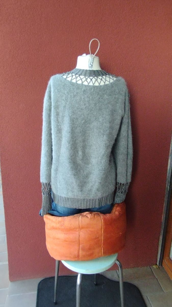 Superbe maxi pull hiver 50% angora avec détails tréssés en m