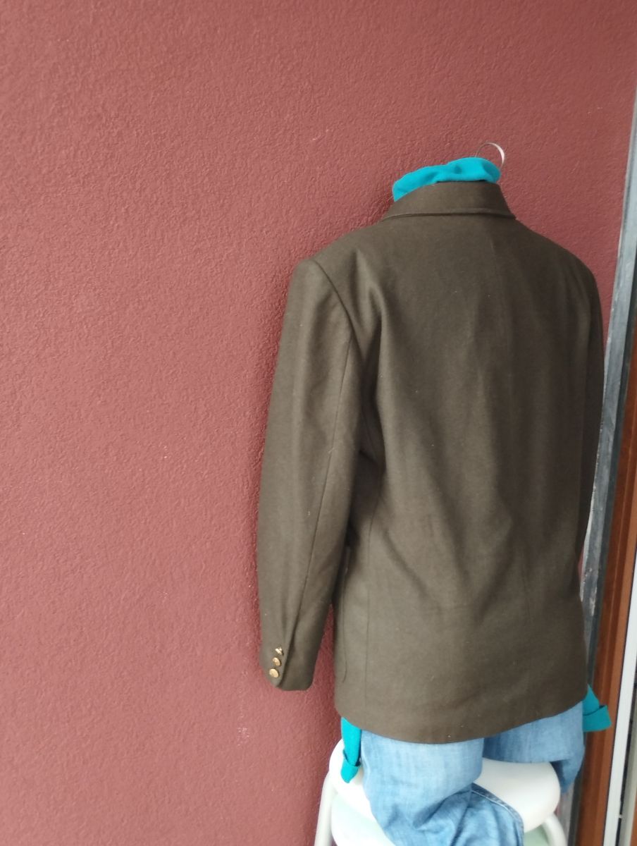 Magnifique Blazer laine androgyne kaki épaules 45 cm