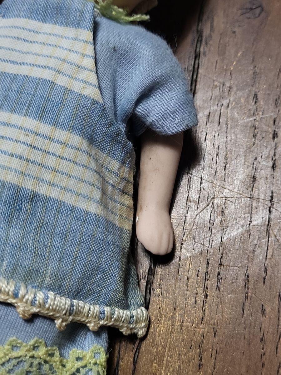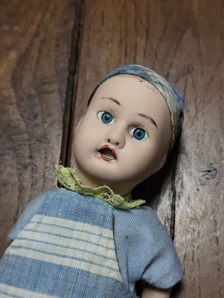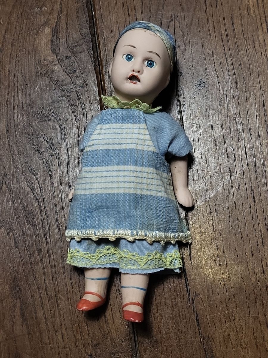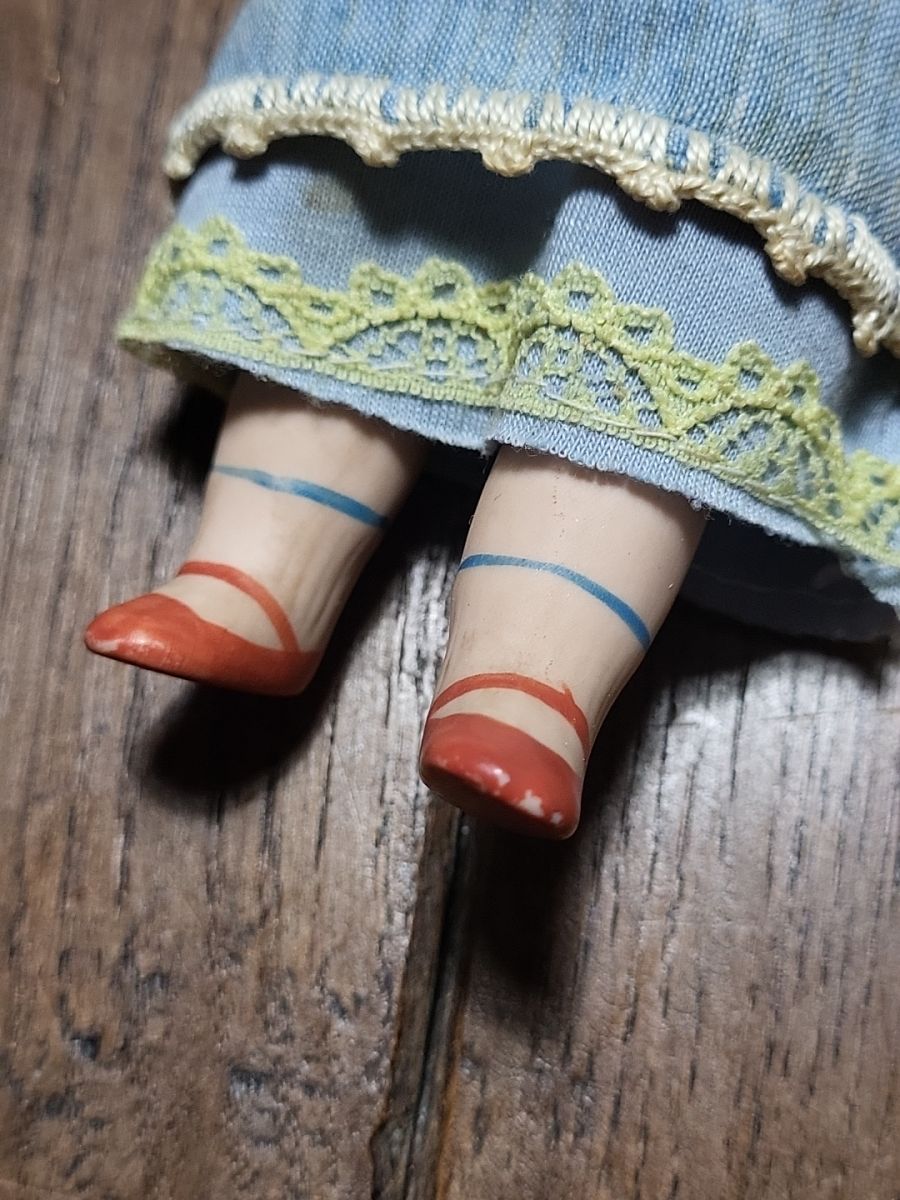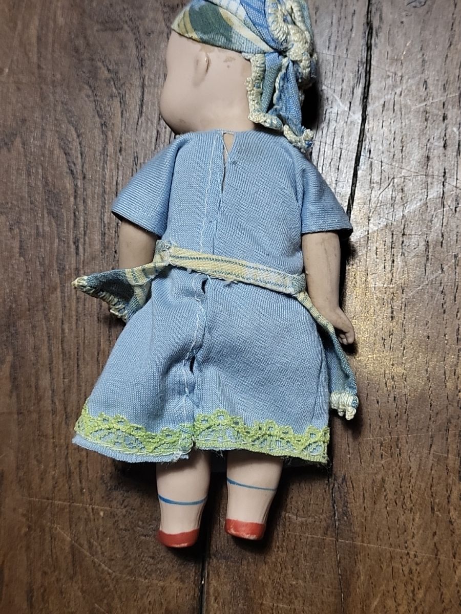 Ancienne poupée en porcelaine. En bon état. Hauteur 17cm, largeur 6cm. Quelques petits manque de peinture.