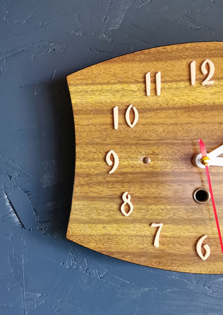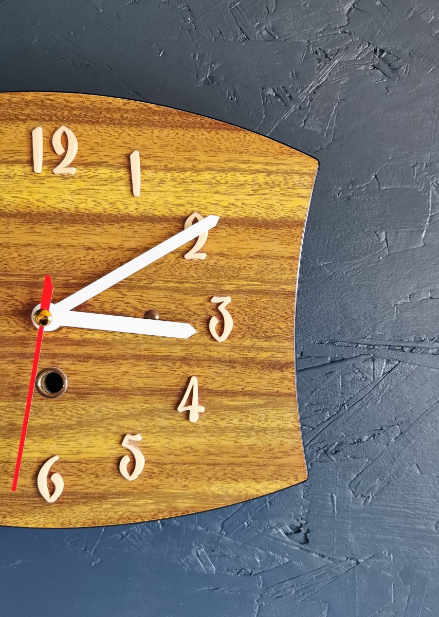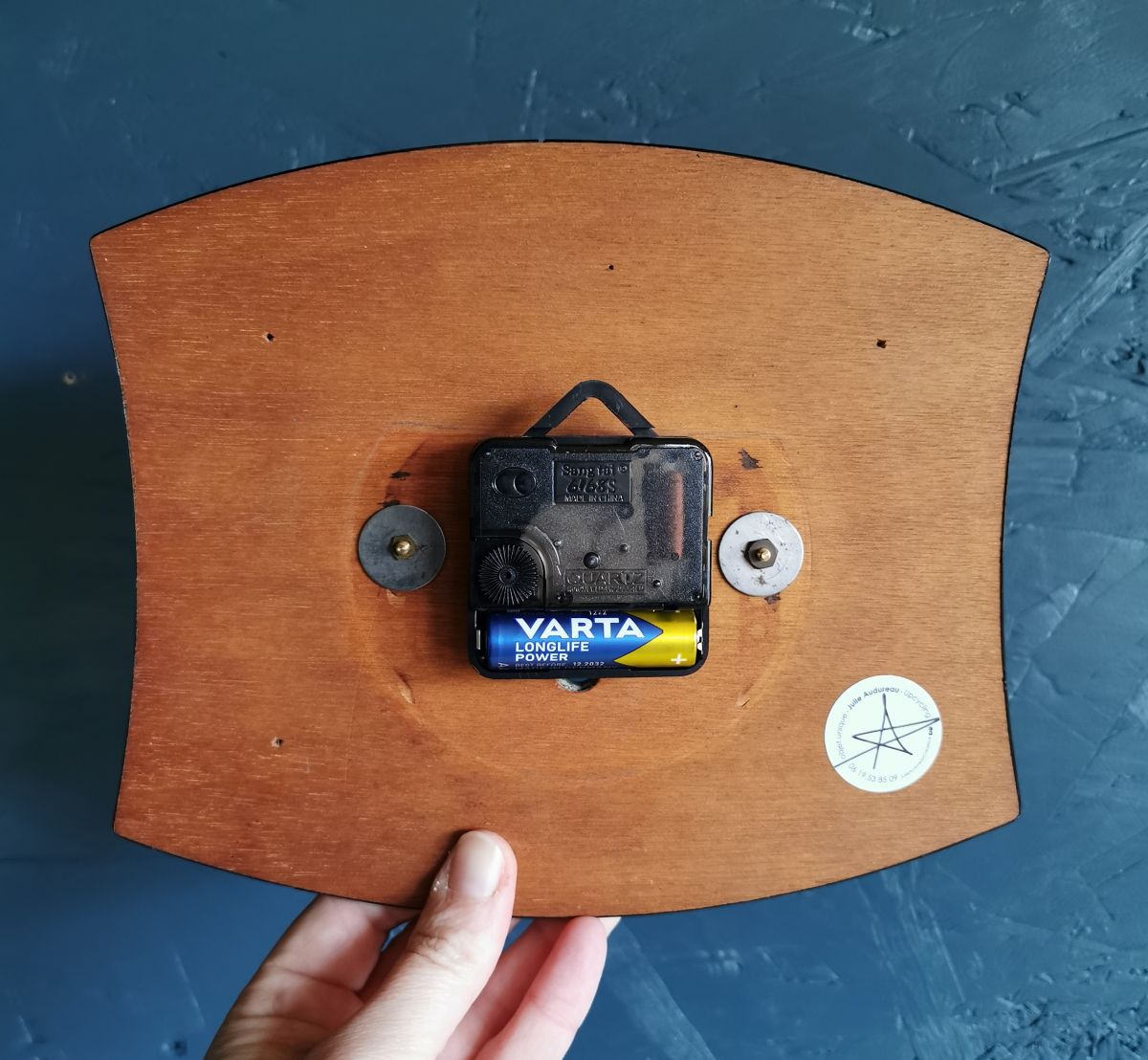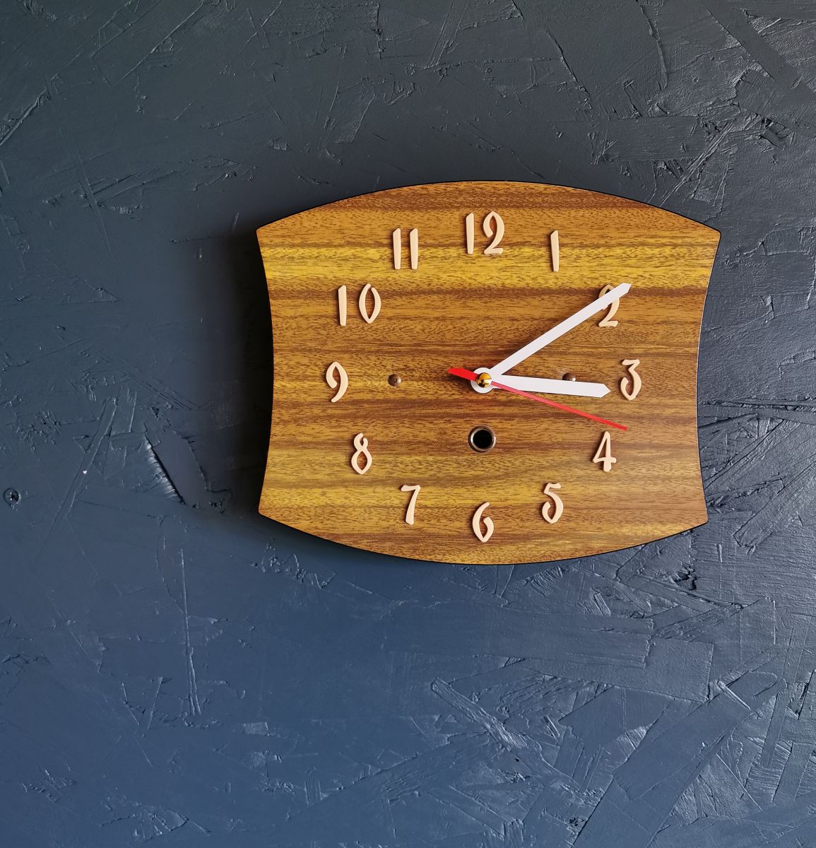 Horloge formica vintage pendule murale silencieuse "Bois chiffres reliefs"
