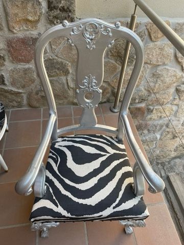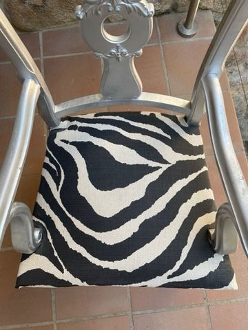 Fauteuil de style baroque, en bois, tissu zèbre, esprit Savane