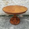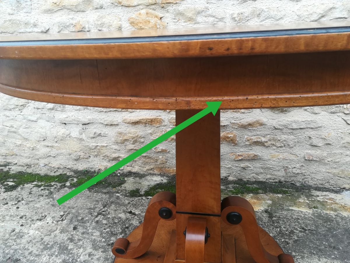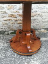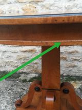 Guéridon ovale art déco en bois de merisier vernis ,le meuble est nettoyé et traité et est en bonne état , le tout est stable et solide , quelques , petites taches et petites rayures et des petits trous de ciron sur la ceinture en dessous du plateau voir la photos avec la flèche verte , le tout est stable et solide . dimensions: longueur 100 cm x profondeur 72 cm x hauteur 76 cm ...hauteur sous traverse 67 cm .