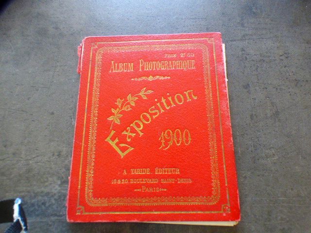 EXPOSITION 1900 - Album photographique - Paris ; A. Taride, Editeur 1 volume en accordéon - 18 reproductions photographiques en noir légendées - Reliure éditeur cartonnage rouge - Titre et encadrement par frise dorés Bon état, à été feuilleté.