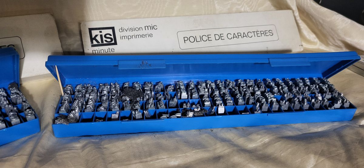 Coffret de lettres d imprimerie jamais utilisées. Assez lourd.