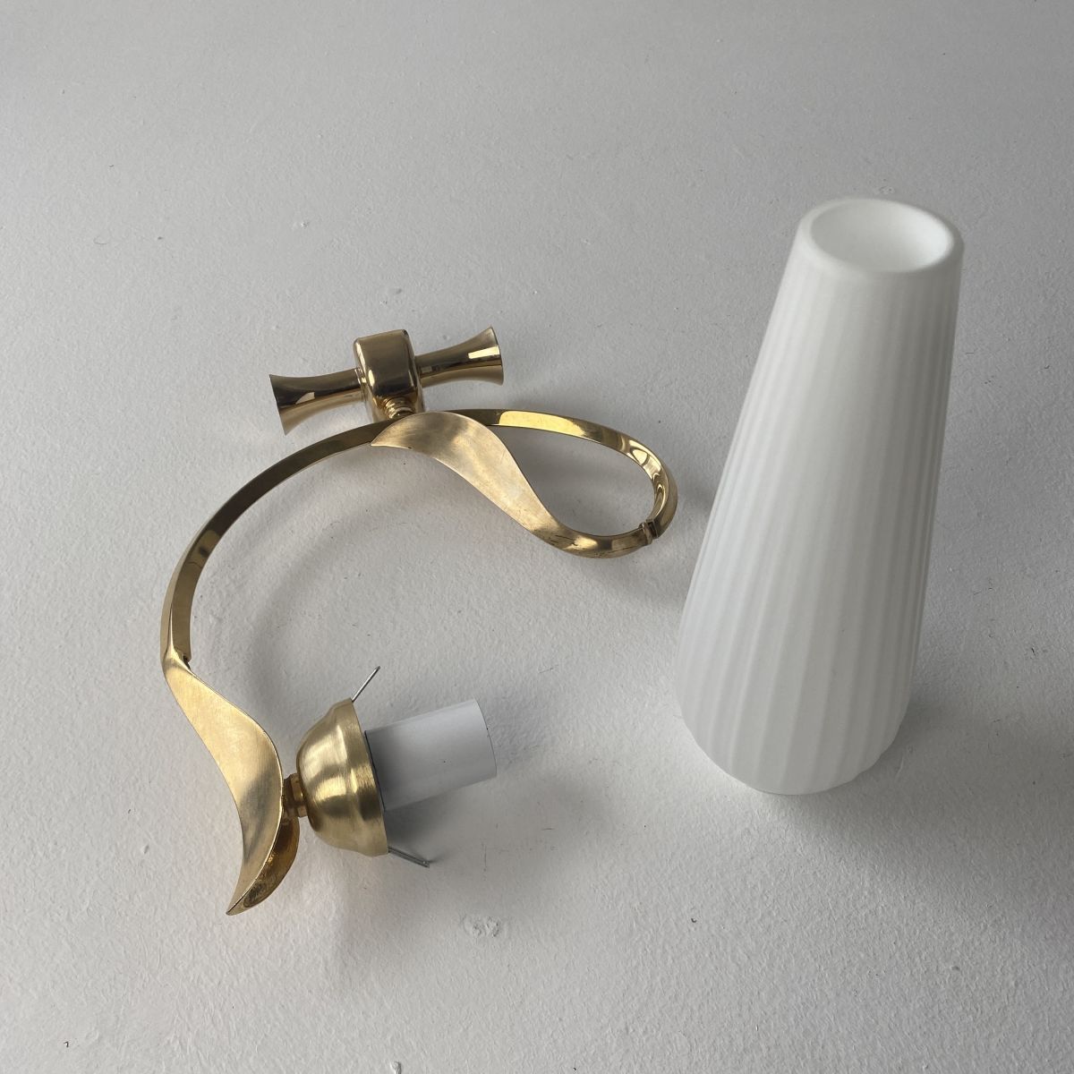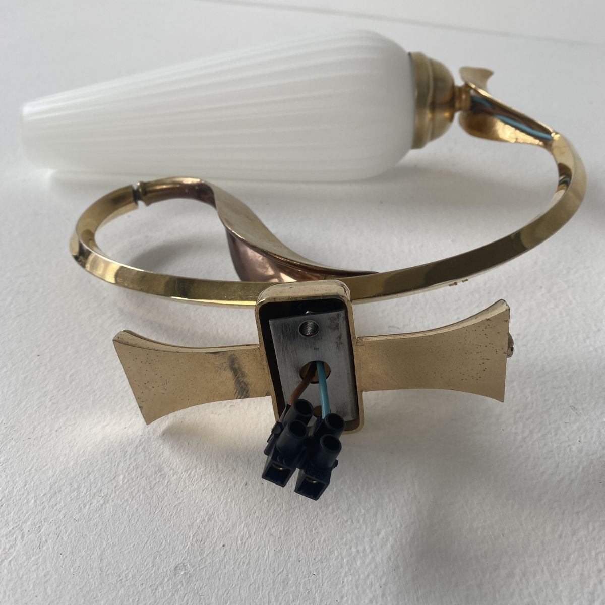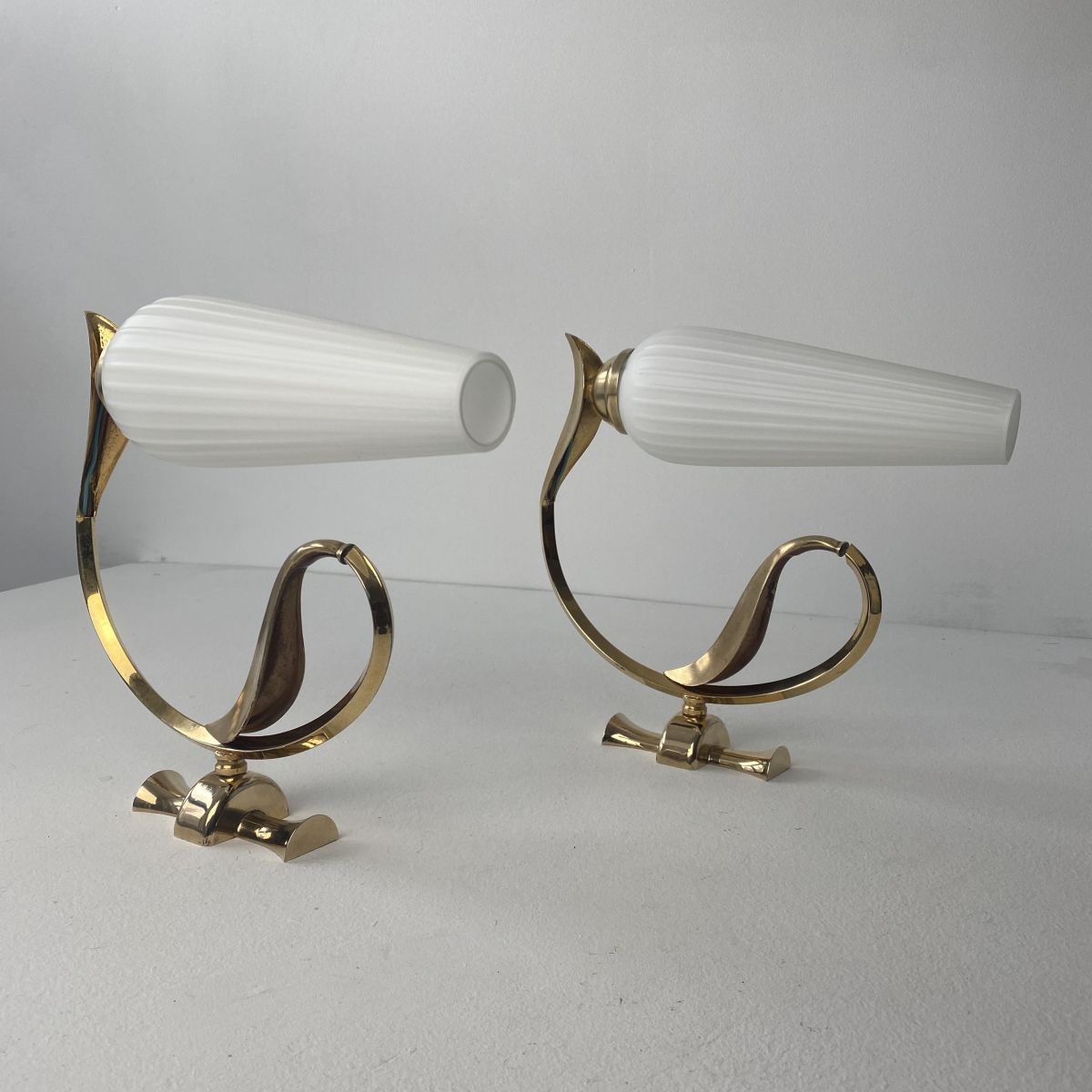 PAIRE D’ANCIENNES APPLIQUES EN OPALINE ET LAITON VINTAGE