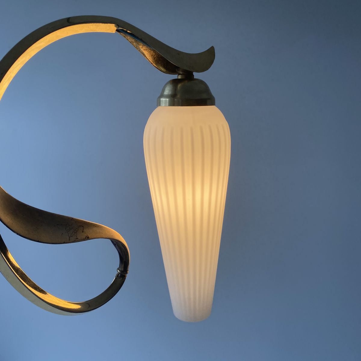 2 magnifiques appliques en laiton et opaline canelé. En bel état.
