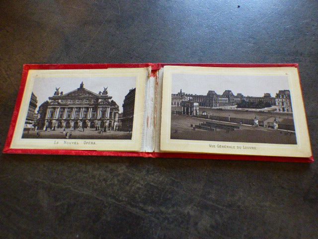 livret "SOUVENIR DE PARIS" couverture rouge rigide Photos papier r. En dépliant