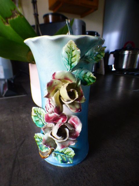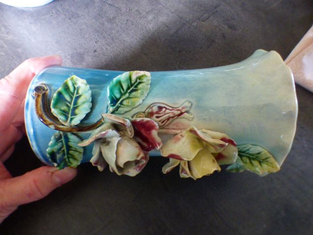 en bon état quelques feuillages ébréchés ce vase porte quelques cicatrices de son histoire et de sa vie passé. Usure du temps qui le fait encore plus appréciable