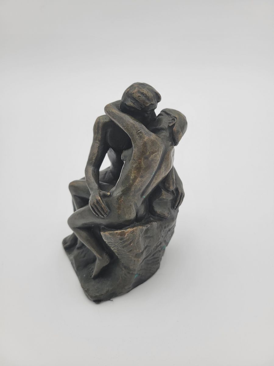 Statuette en bronze, reproduction de l'œuvre "Le baiser" de Rodin