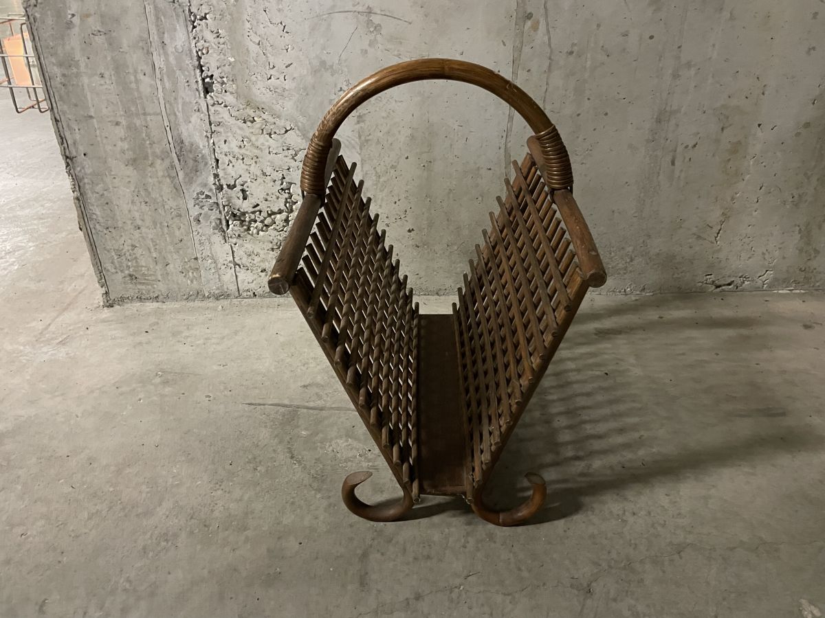 Porte-revues en rotin années 60