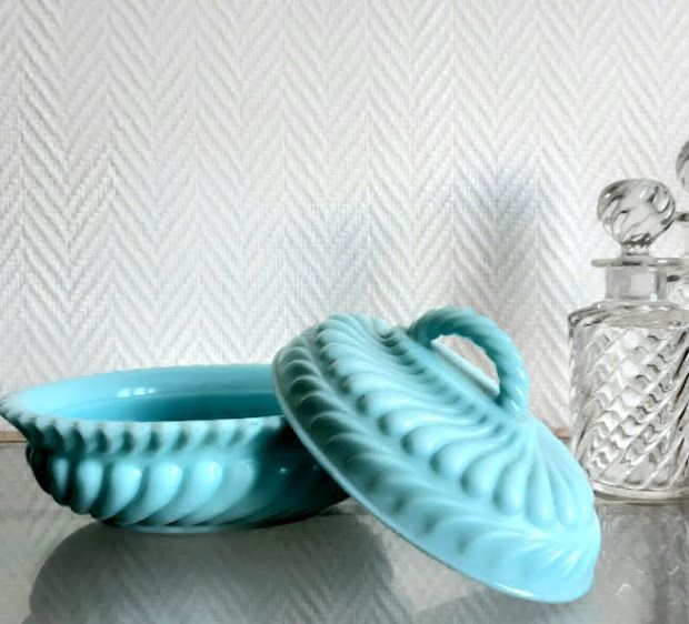 Bonbonnière art déco en opaline bleue