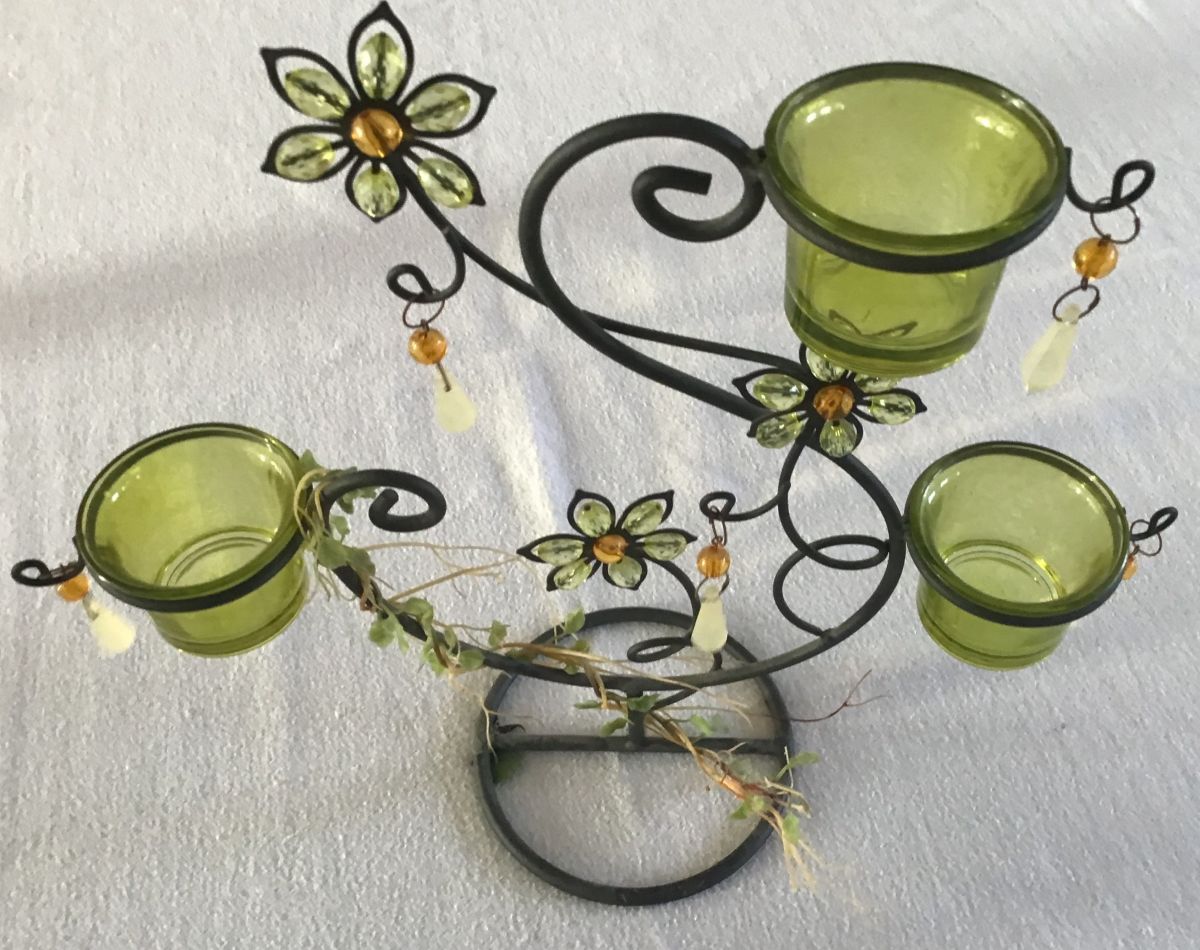 Vends bougeoir en fer forgé avec 3 coupelles en verres.