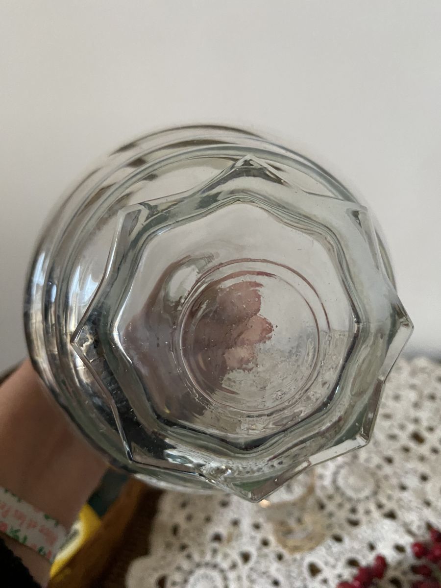 Verre 7 x 5 cm, carafe 23 x 9 cm.