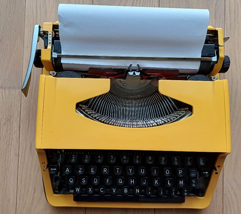 Machine à écrire jaune Nogamatic modèle 400.