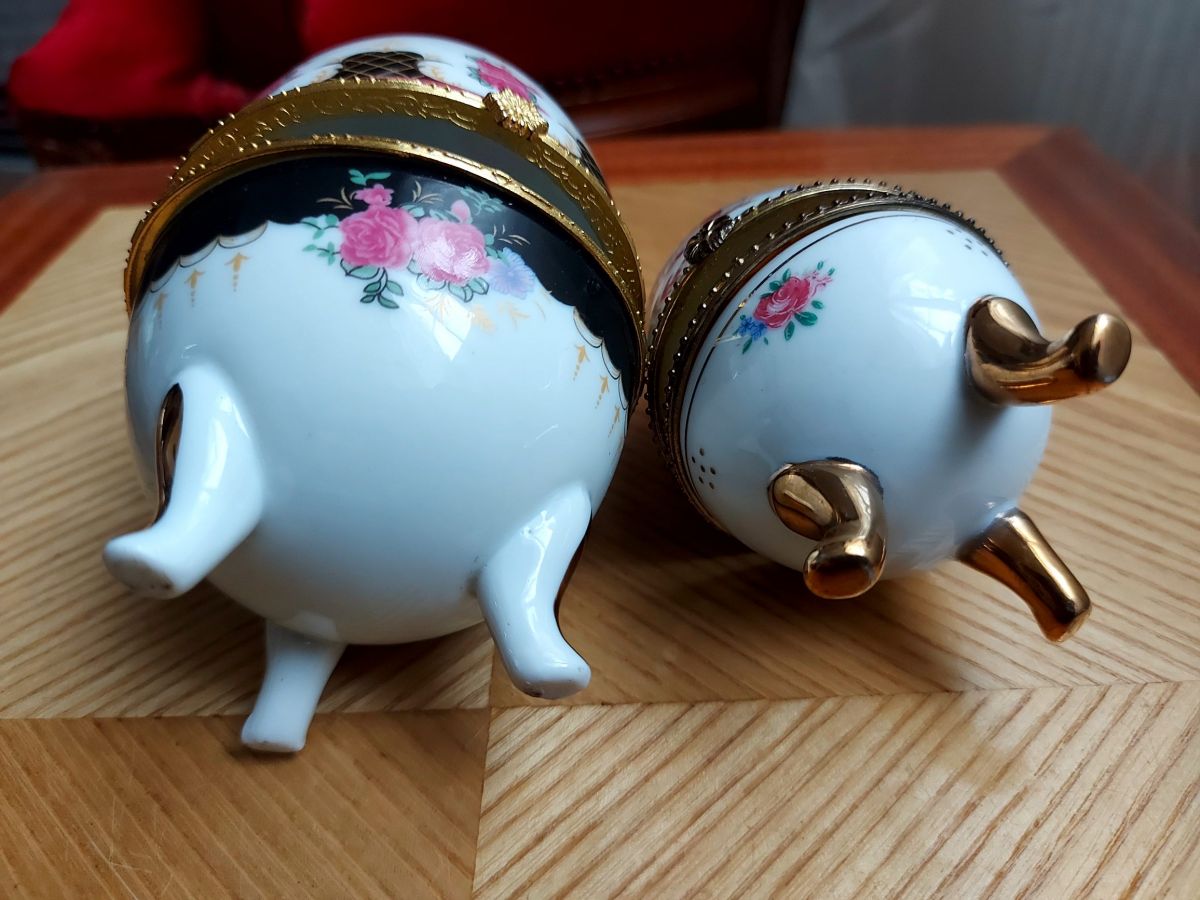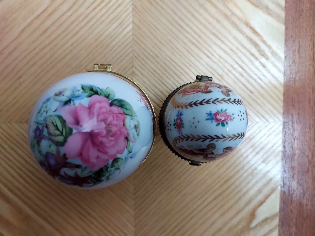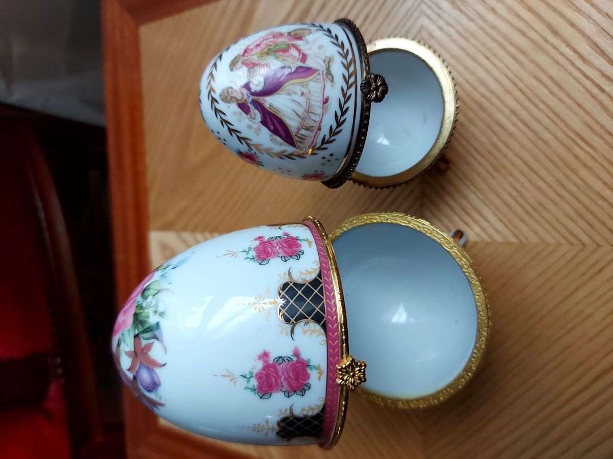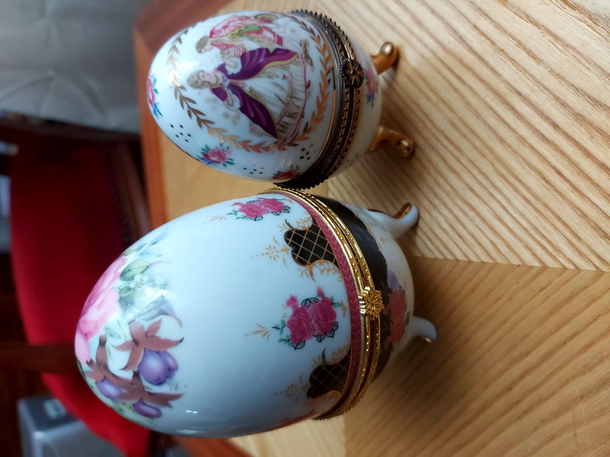 Lot de 2 œufs porcelaine, le grand environ 13 cm de hauteur et le petit 10 cm, bon état