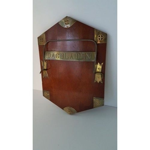 Art Déco - Porte-journaux mural (modèle rare) - Bois, cuivre
