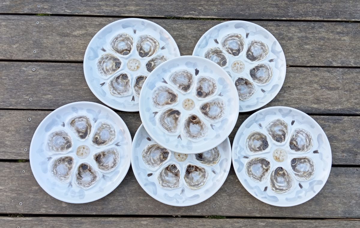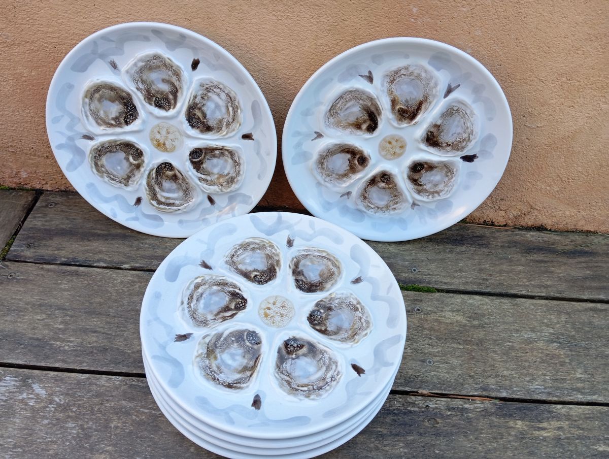 6 assiettes huîtres barbotine Manufacture St Amand