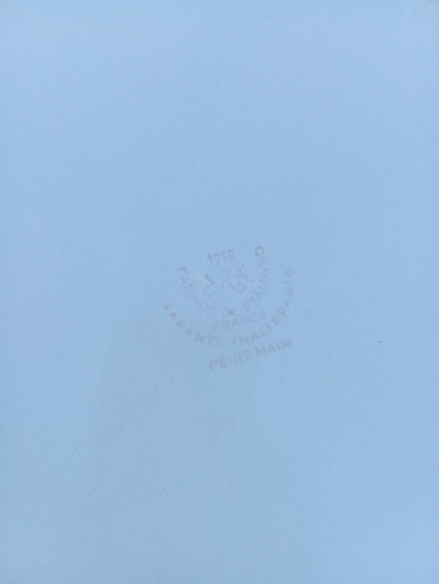 Marqué : Faience de St Amand France, Garanti Inalterable, Peint main