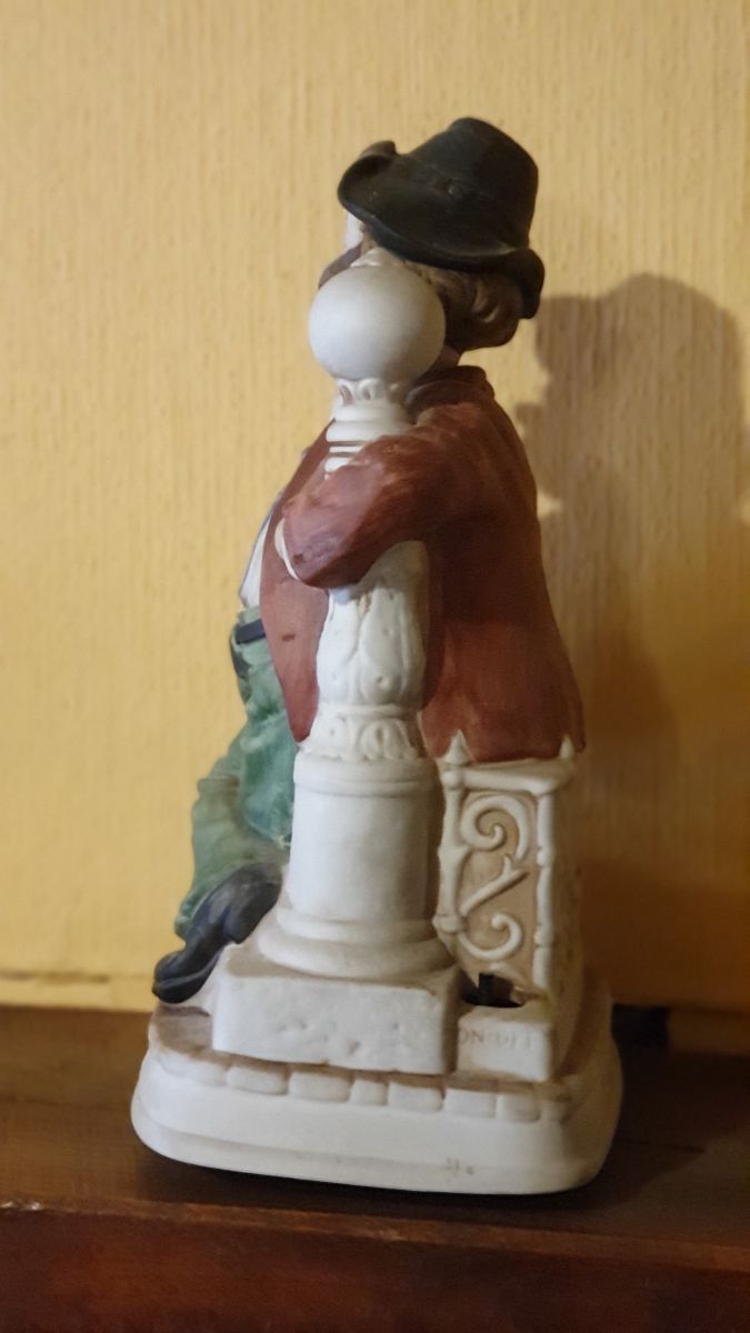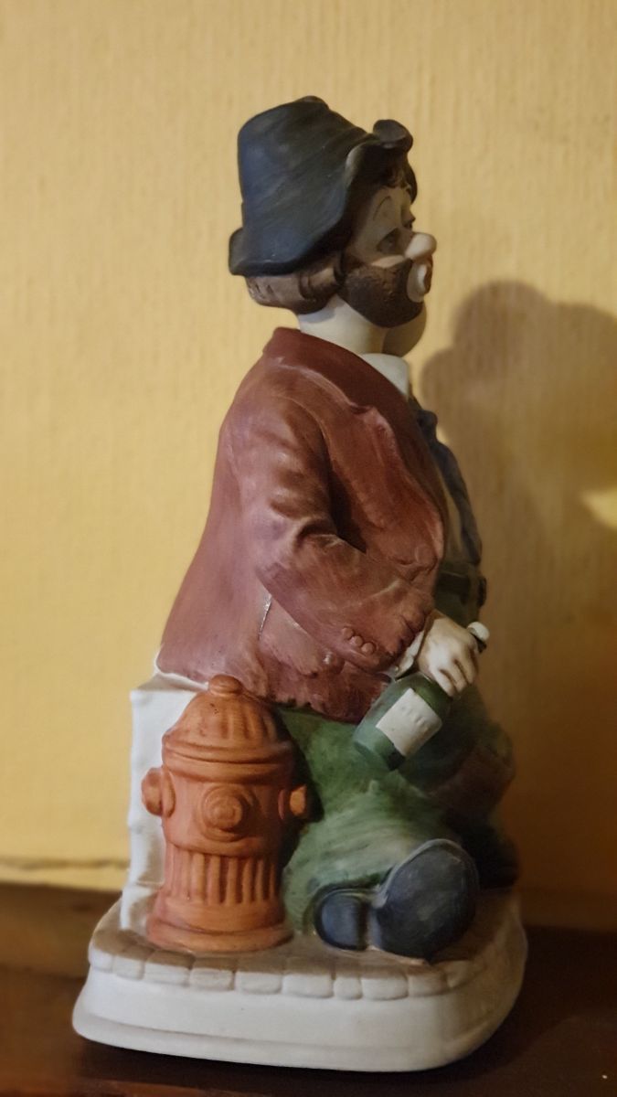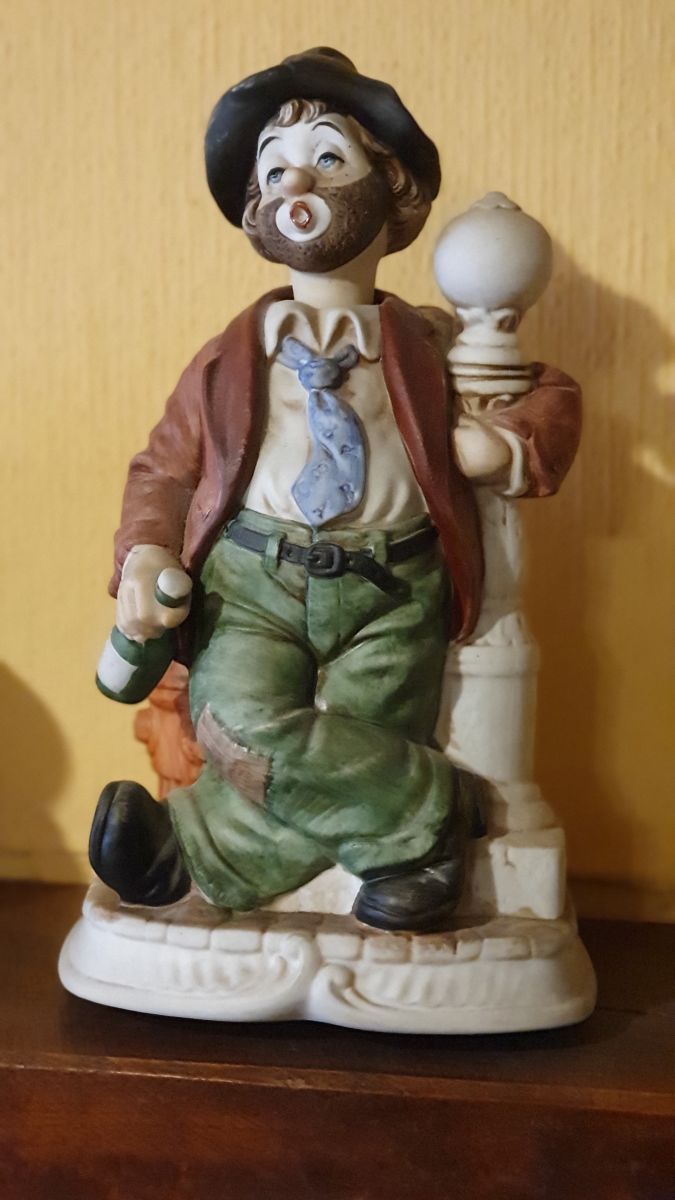 Clown de la marque Melody in motion, fabriqué au japon, années 60. Modèle clown à la bouteille, fait à la main et peint à la main, fabriqué en porcelaine. Figurine articulée. Boite à musique. Taille 28 cm x 15 cm.