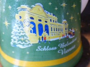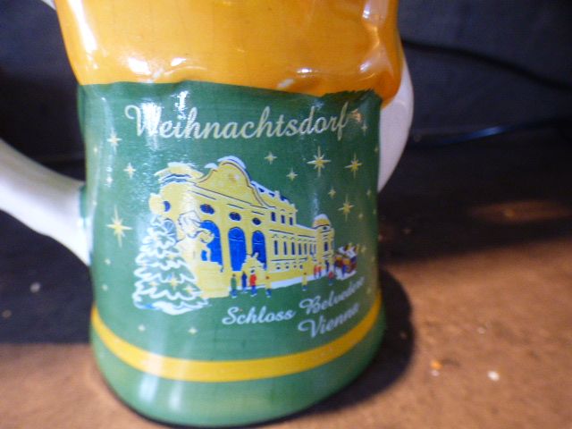 Tasses en céramique au Marché de Noël au Palais du Belvédère, Vienne, Autriche. •