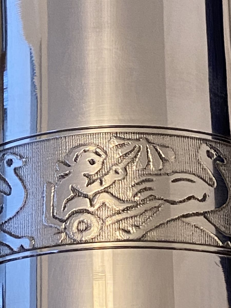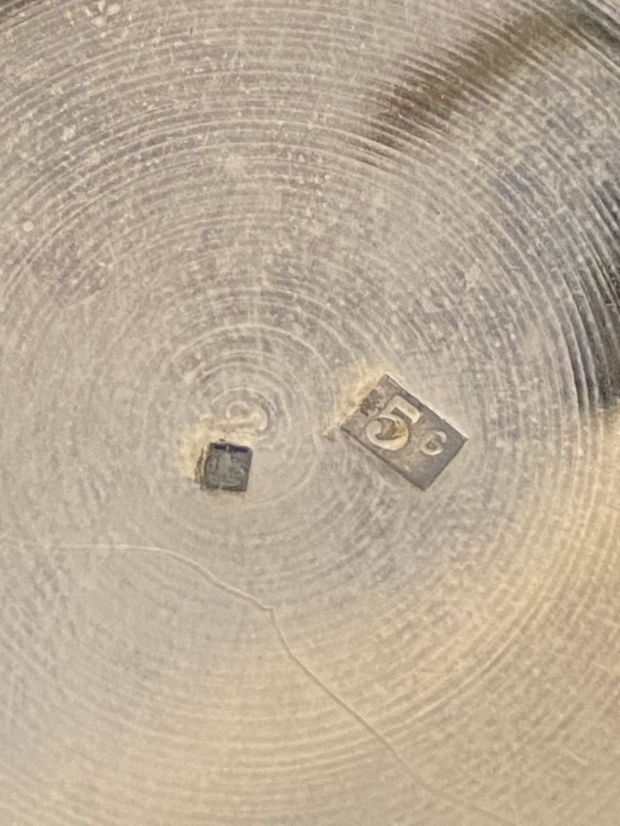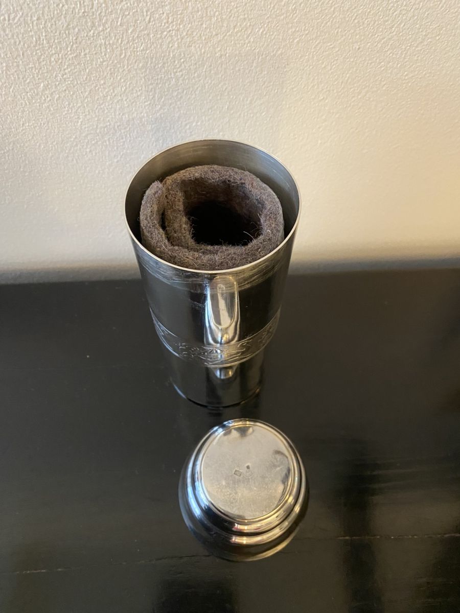 Thermos protège biberon en métal argenté avec Poinçons. Vintage 50/60. Avec une frise de décor au centre. Était offert en cadeau de naissance. Dans son coffret d origine. Plus de photos ou d informations sur simple demande