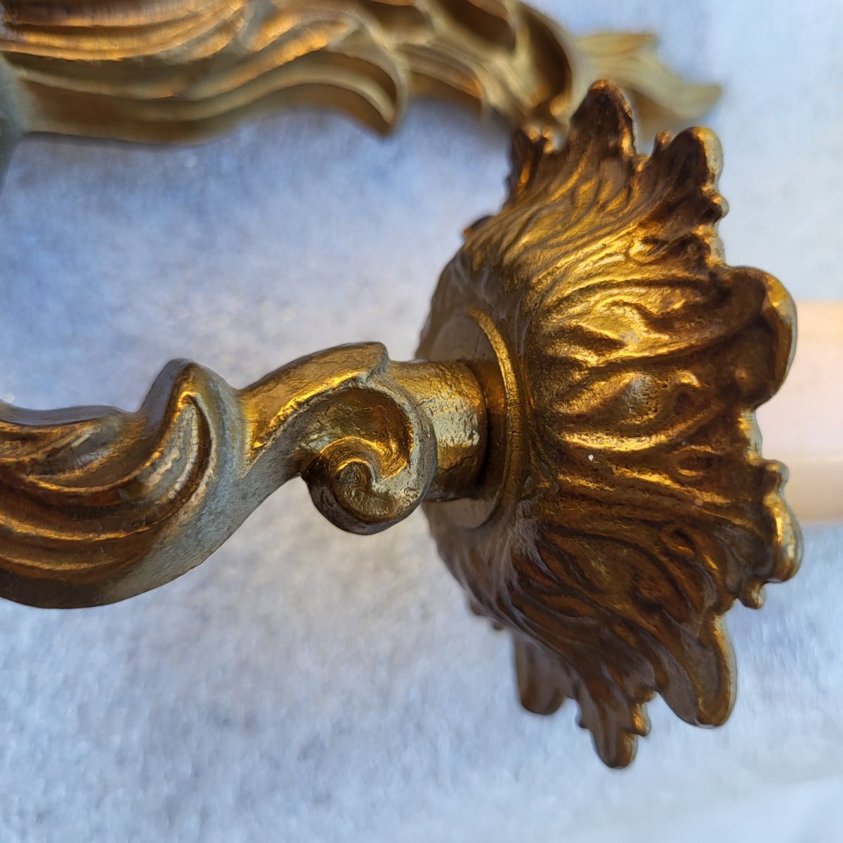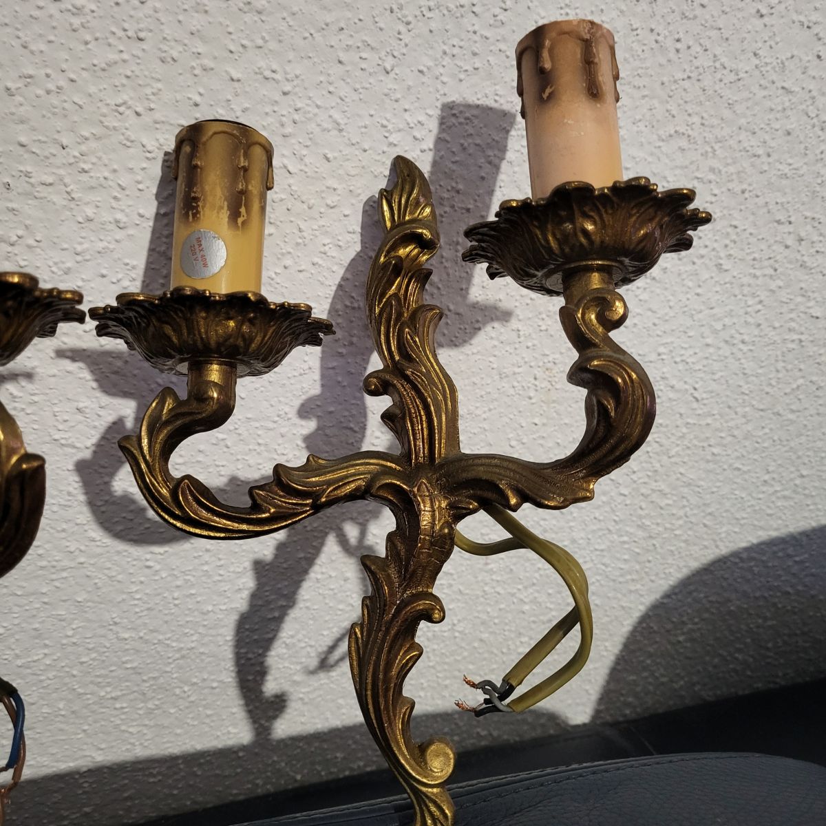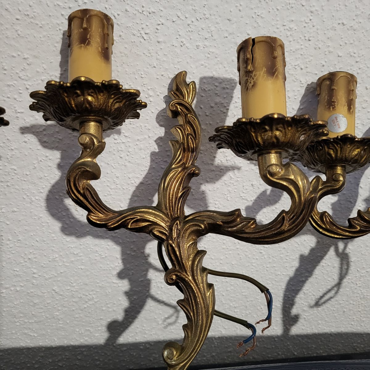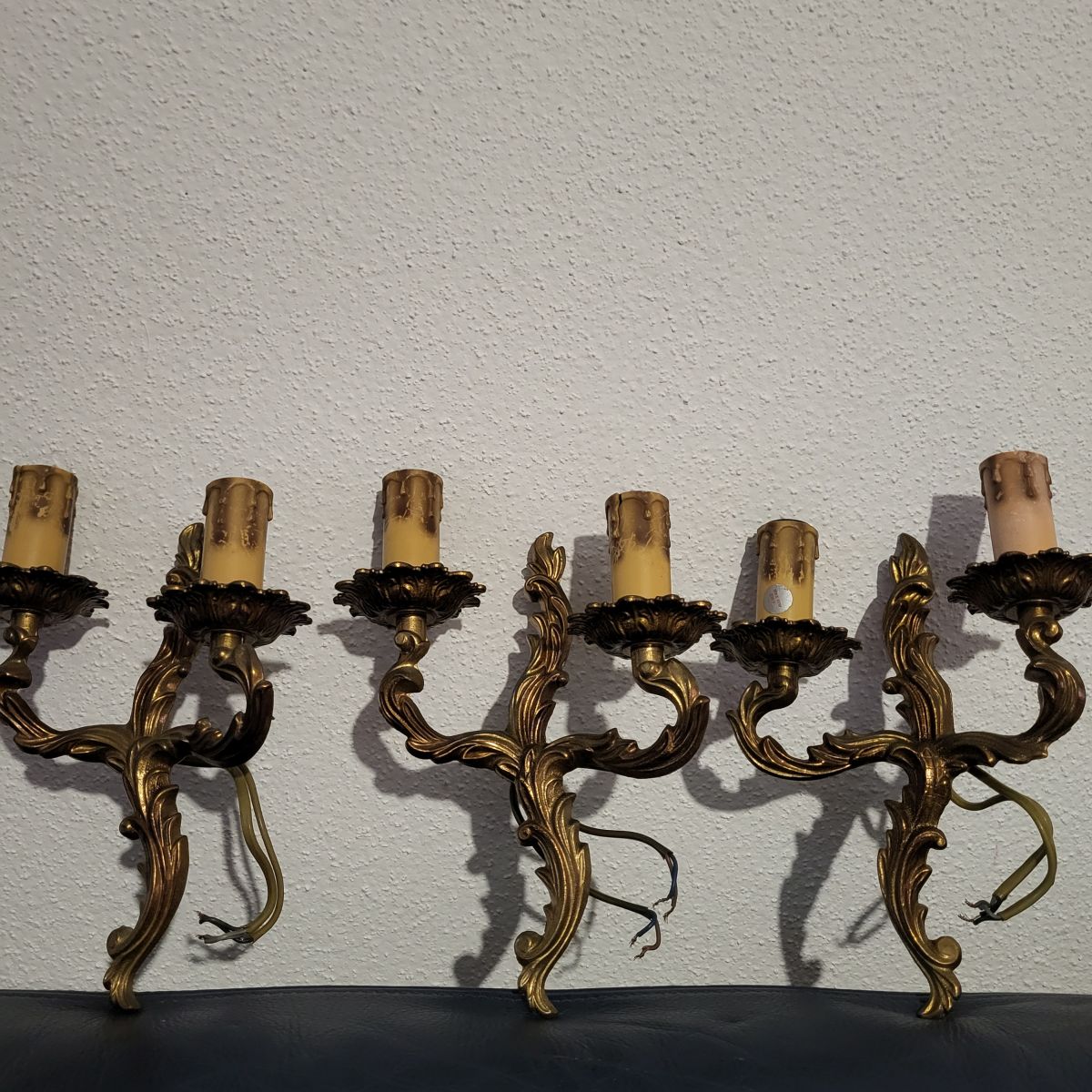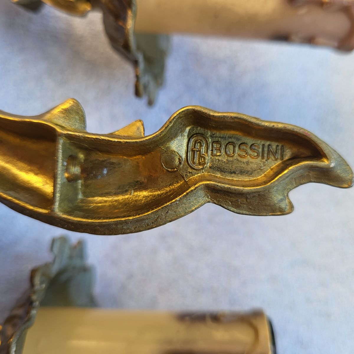 3 appliques en bronze ou laton signé Bossini, milieu 20ème, 3 bougies fendues, d ou le prix.