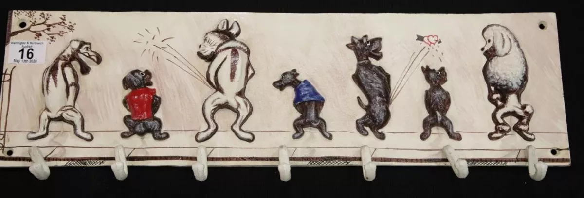 Magnifique porte manteau vintage en fonte avec 7 chiens