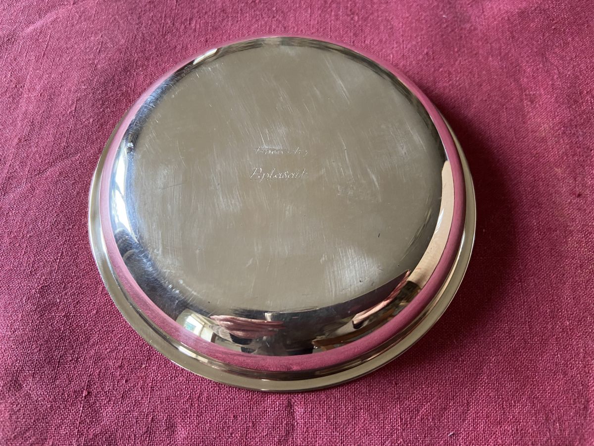 Dessous de bouteille ou de carafe en métal argenté signé Pierre Plasait, Orfèvre à Paris.