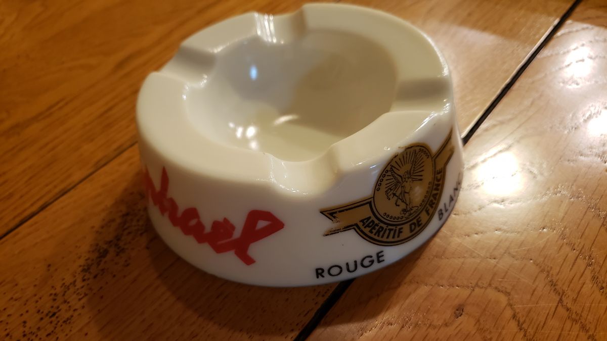 Cendrier publicitaire en opaline pour les apéritifs Saint Raphaël.