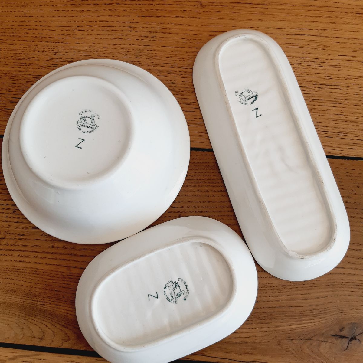 L’ensemble est estampillé de la Fabrique de St Amand. Evidemment, de légères traces du temps existent mais c’est ce qui fait son charme !