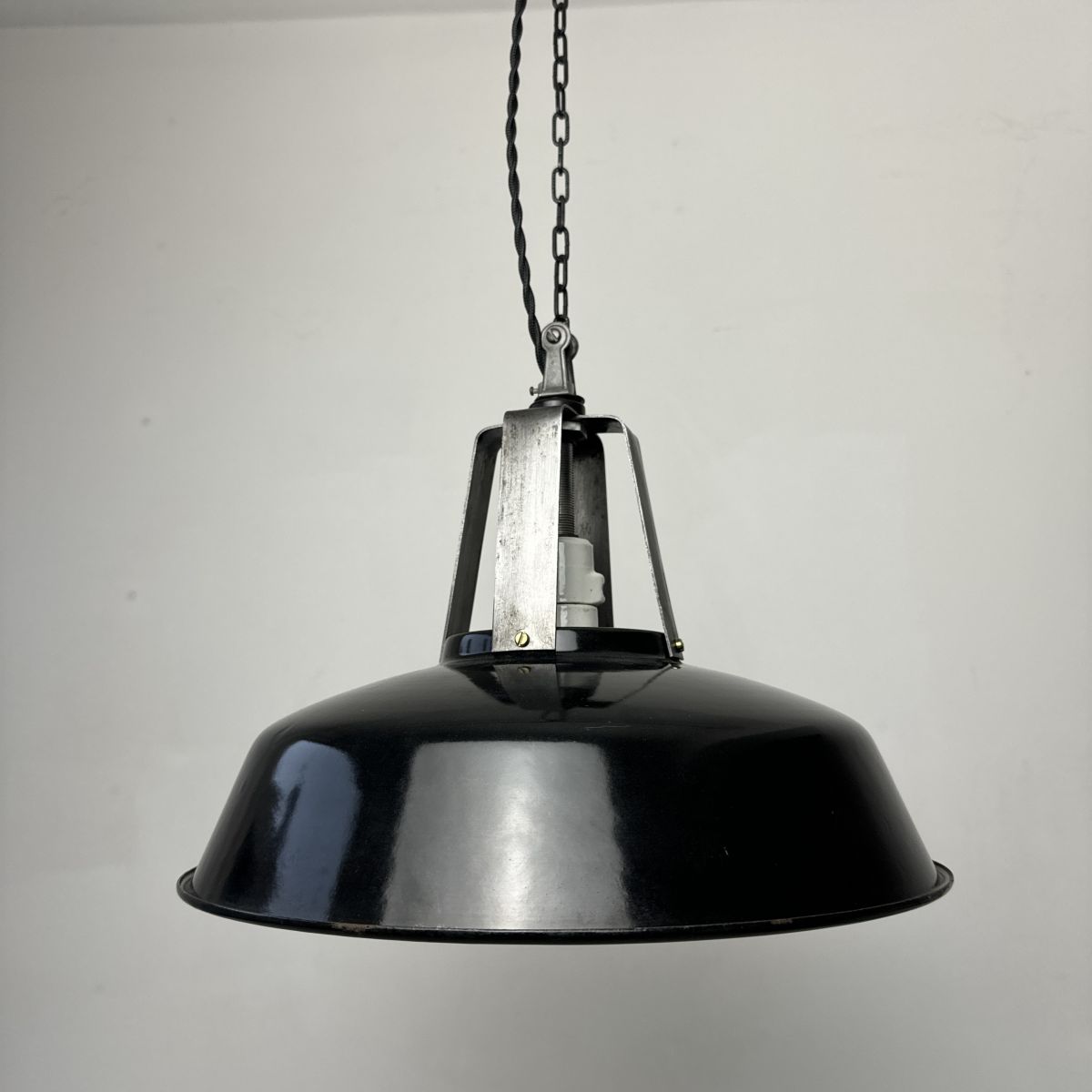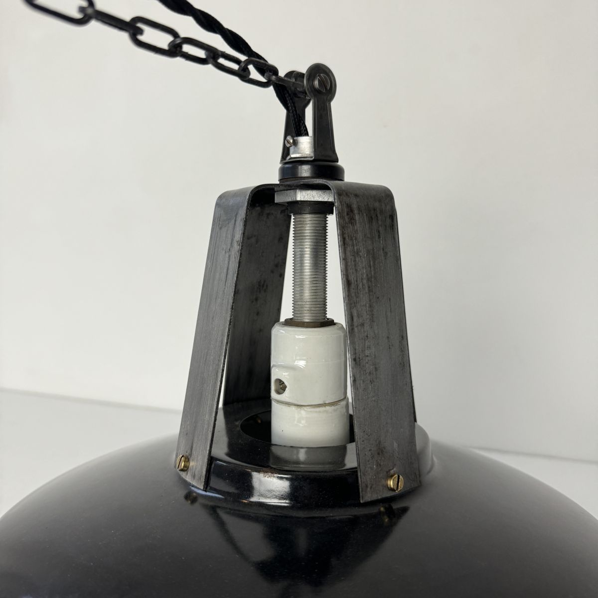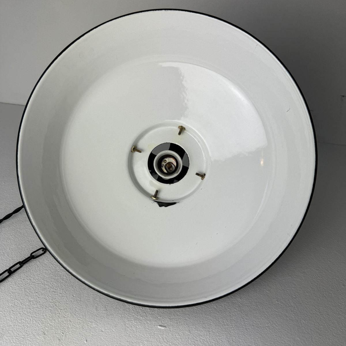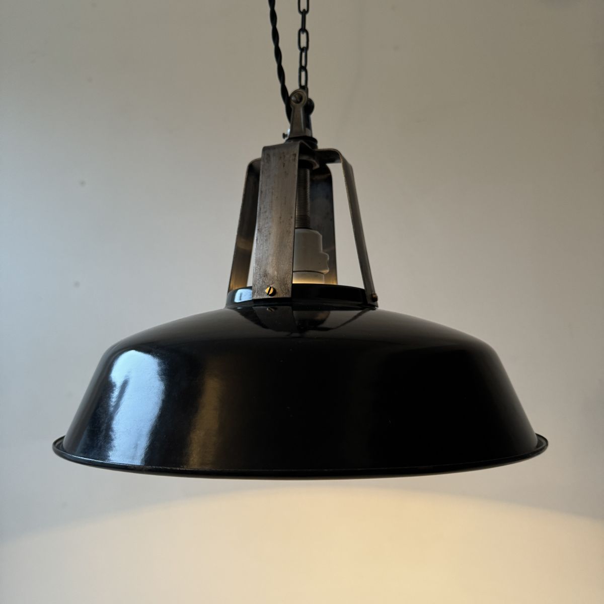 Belle suspension industrielle en tôle émaillée de la marque « MAZDA ». Très bel état général. A noter quelques traces de rouille et sauts d’émail.