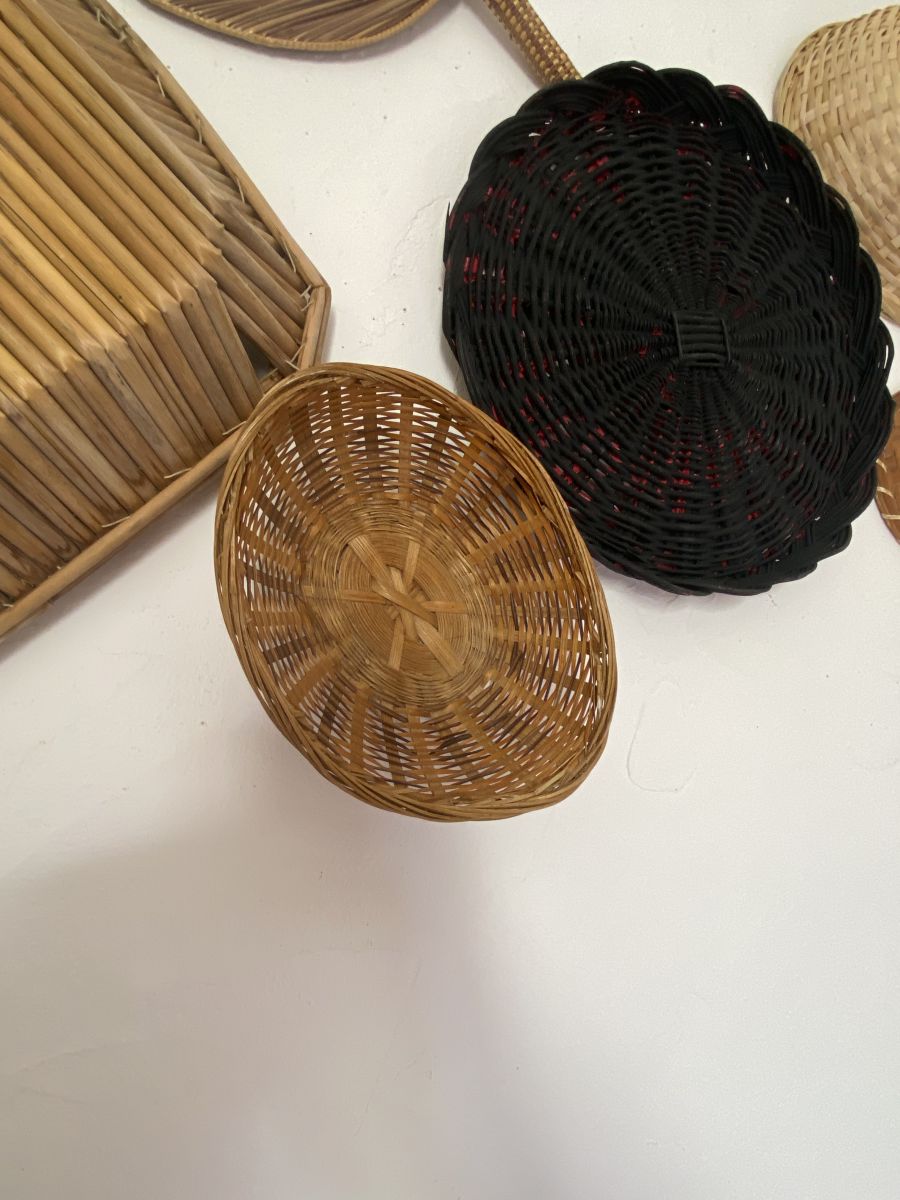 Composition murale de 6 corbeilles, plateaux et éventail.