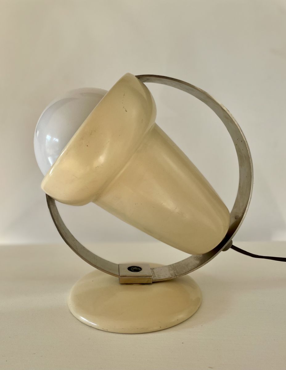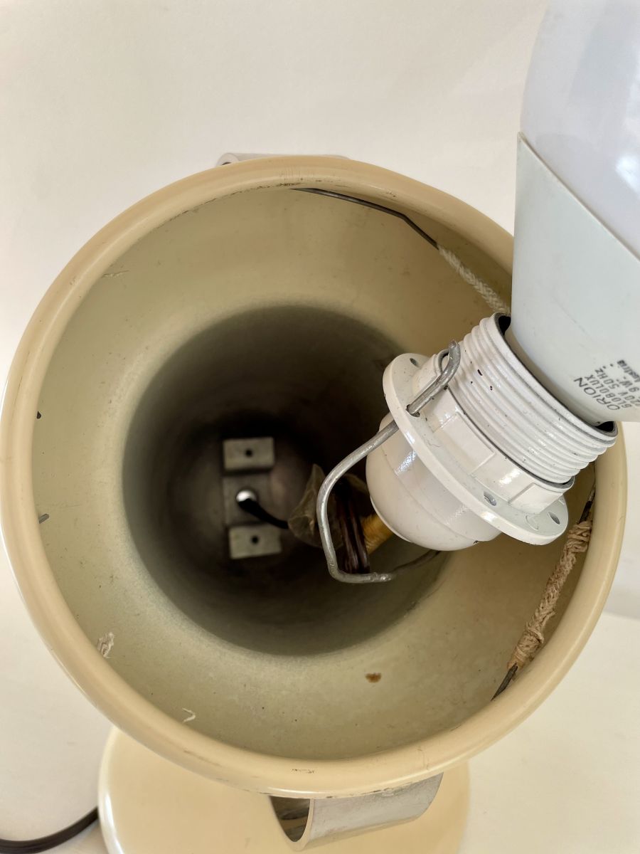 Authentique lampe Charlotte Perriand pour Philips (années 50/60). Le montage n'est pas d'origine mais elle est fonctionnelle. Elle peut se poser en lampe de bureau ou être accrochée en applique ou en suspension.