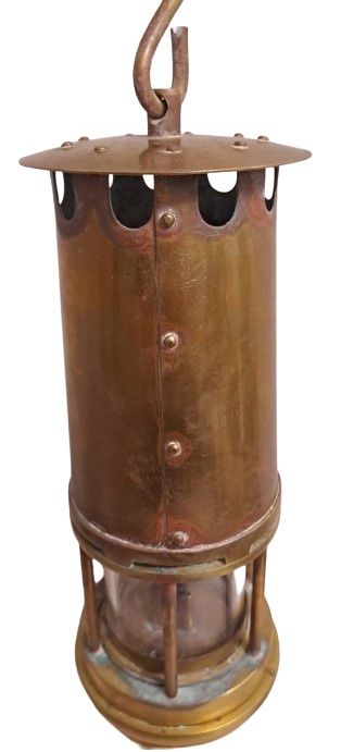 Lampe à huile de mineur / Cuivre et verre / Belgique
