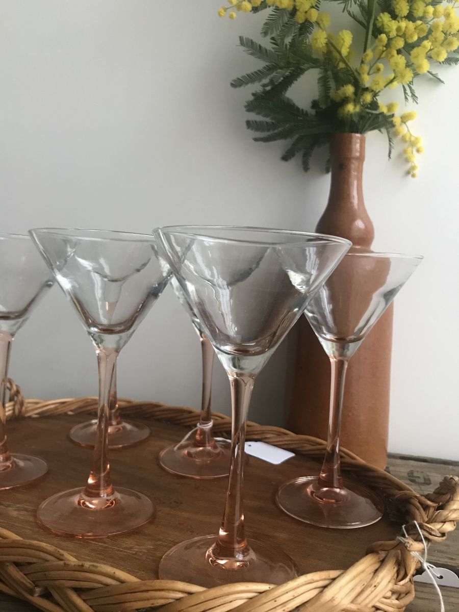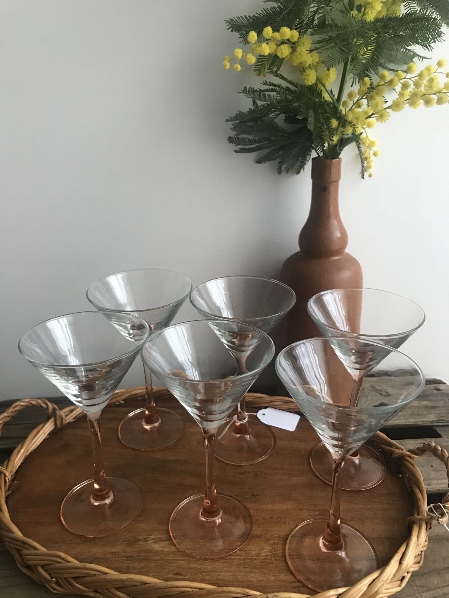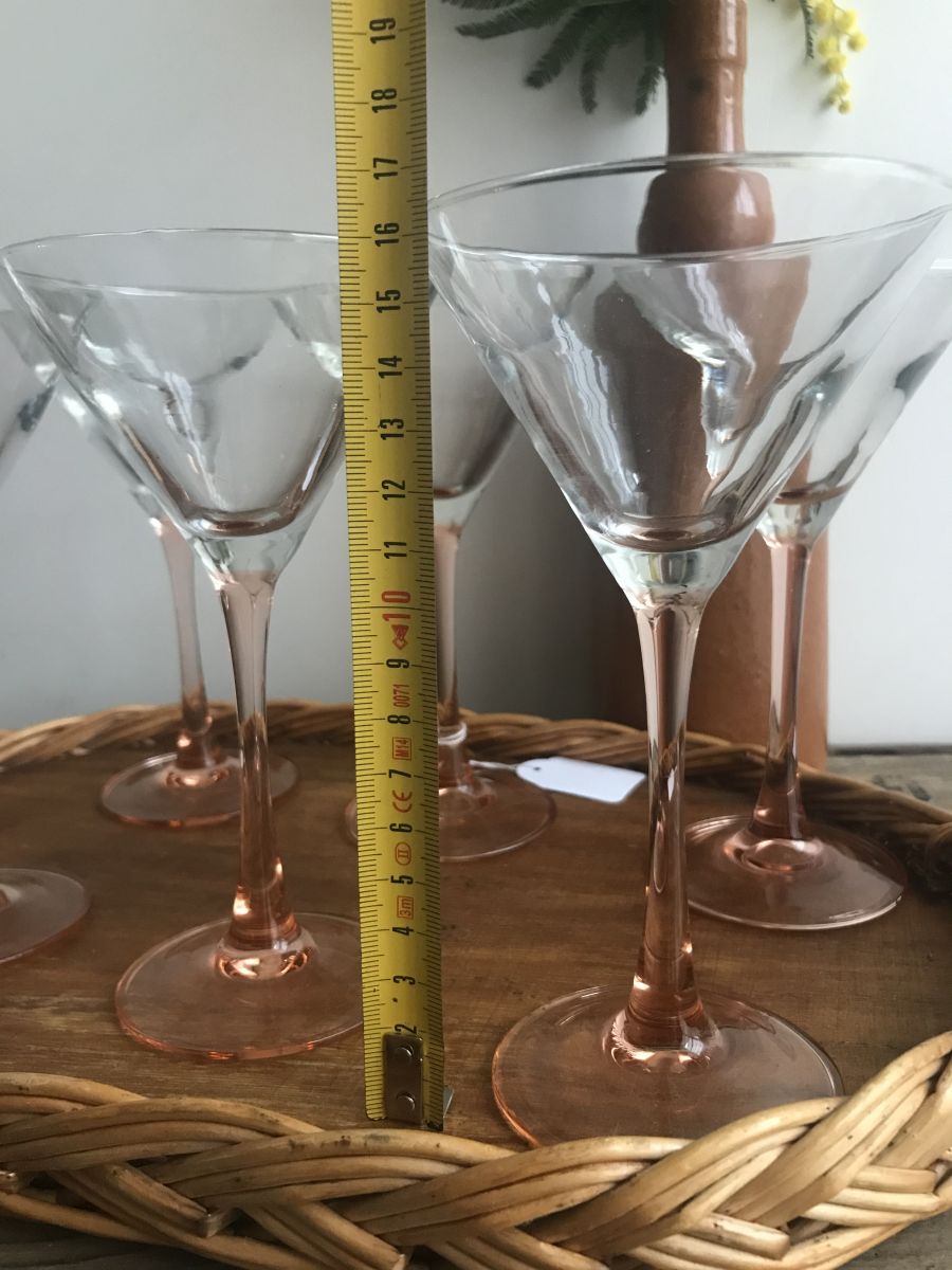 Lot de 6 verres à cocktail avec le pied rose en très bon état!!