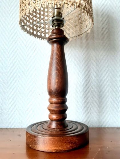 Pied de lampe vintage, travail en bois tourné vers 1950