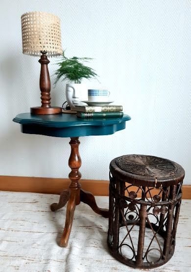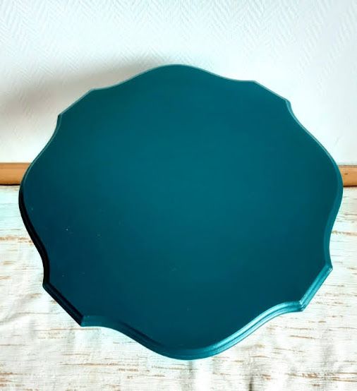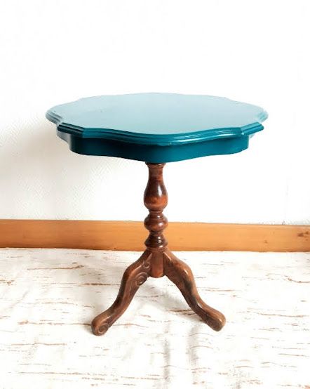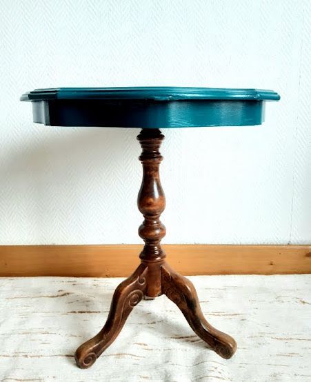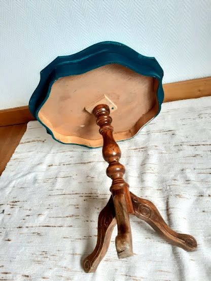 Le plateau a été repeint en vert émeraude et la table totalement revernie afin de lui donner un look plus moderne.