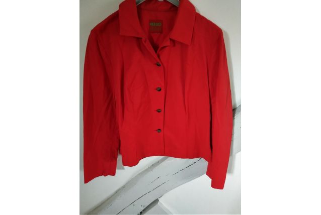 Veste boutonnée courte col polo cardigan blazer rouge femme